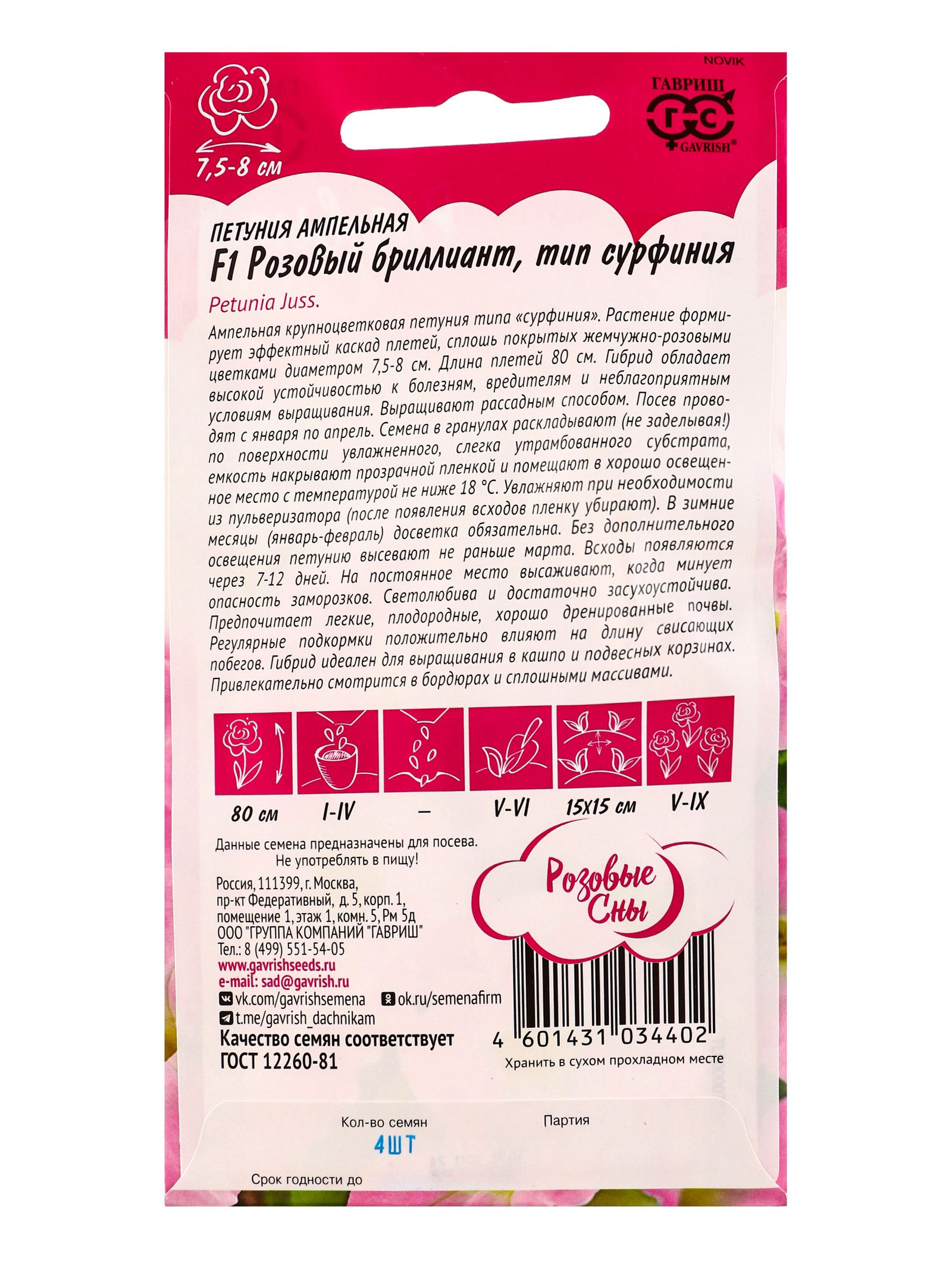 Семена цветов Петуния Розовый бриллиант F1, Гавриш, Россия