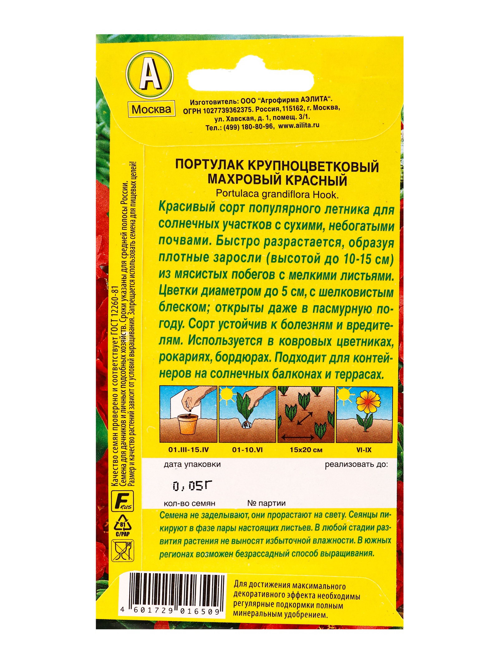 Семена цветов Портулак махровый красный, Ц/П,0.05 г, Агрофирма АЭЛИТА, Польша