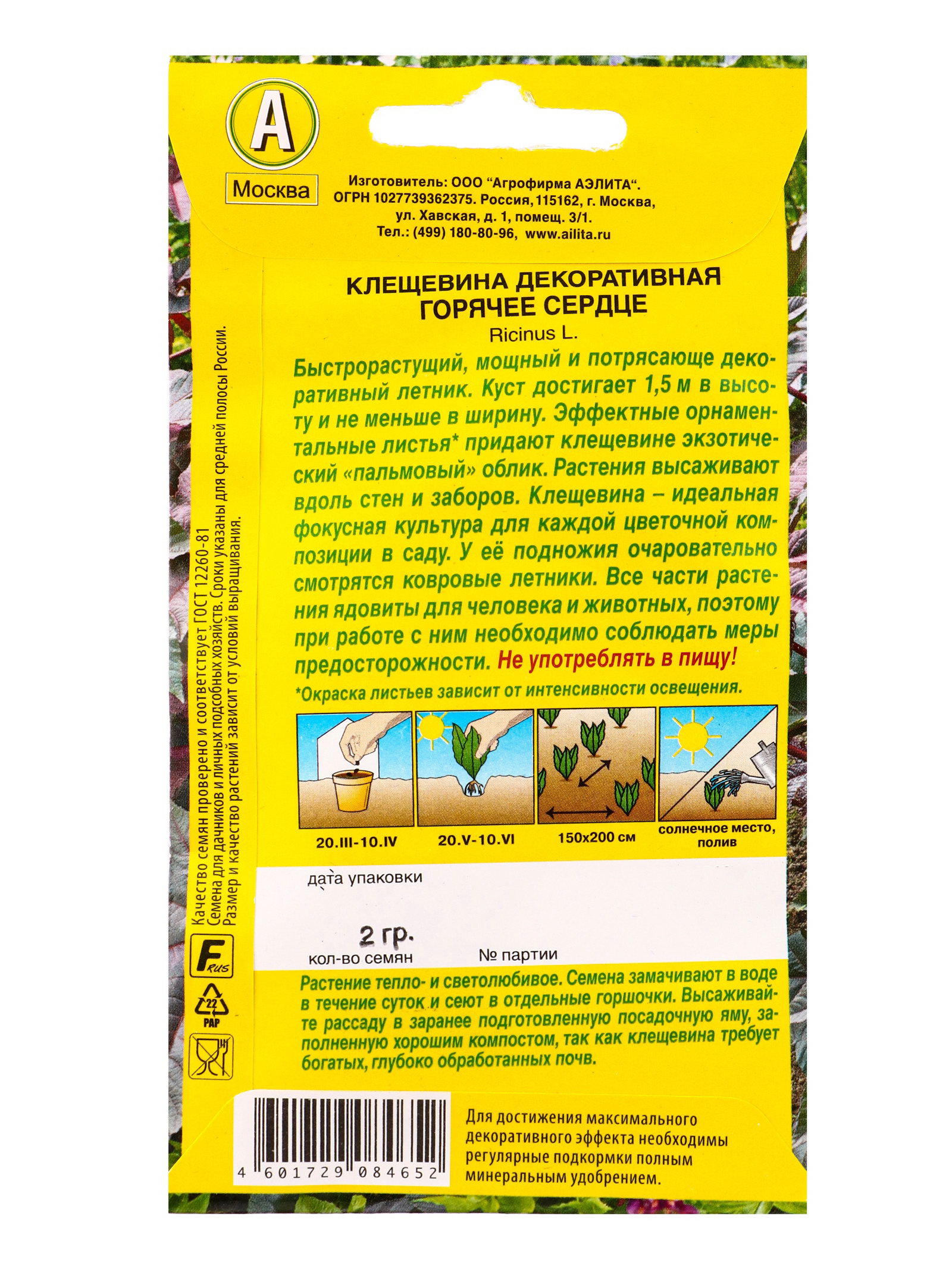 Семена Клещевина "Горячее сердце", О, 2 г, Агрофирма АЭЛИТА, Германия