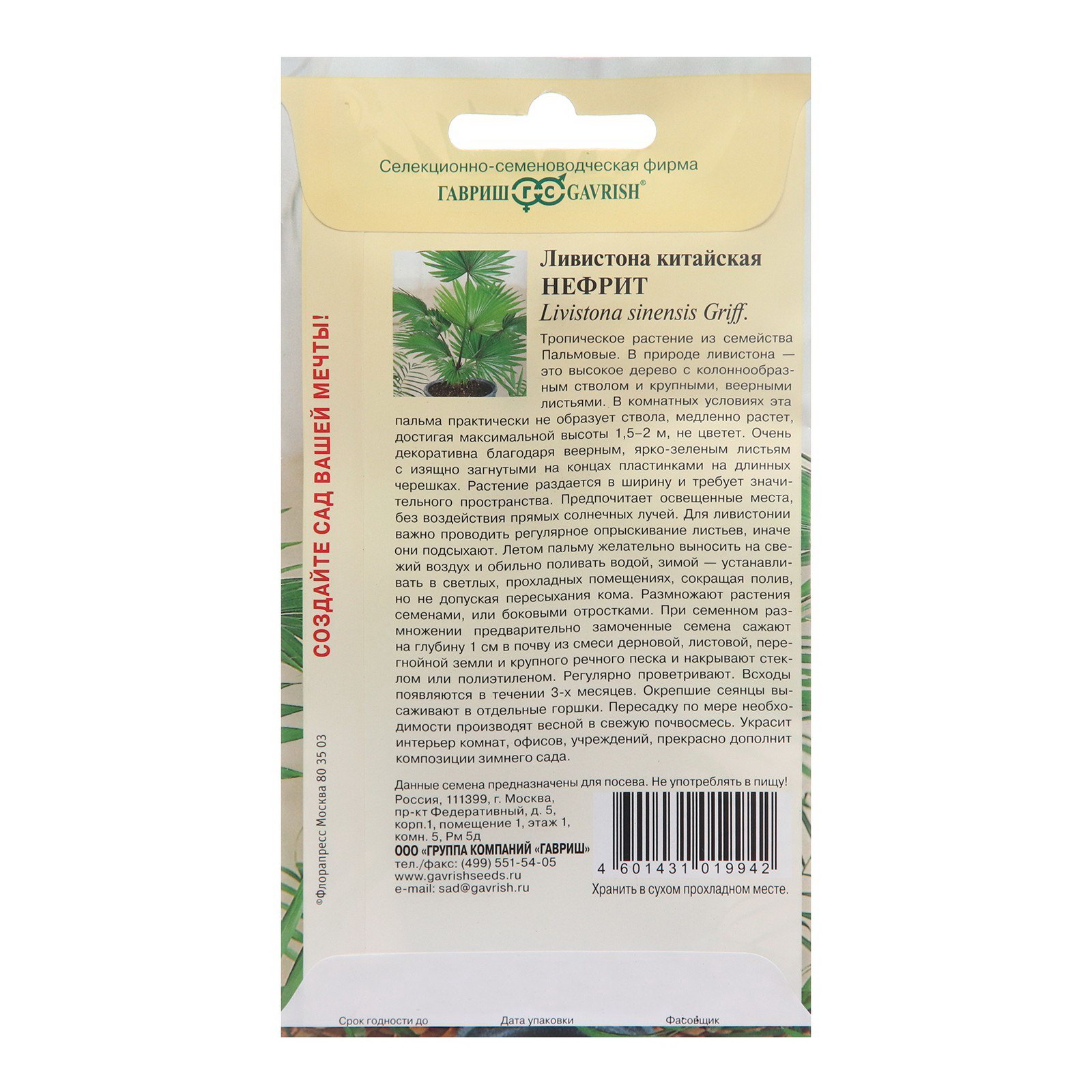 Семена комнатных цветов Ливистона "Нефрит", ц/п, 3 шт., Гавриш, Россия