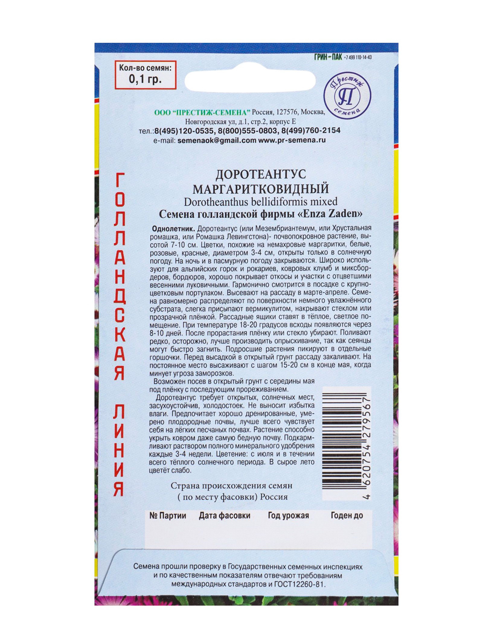 Семена цветов Доротеантус маргаритковый Смесь, О, 0.1 г, Престиж семена, Россия