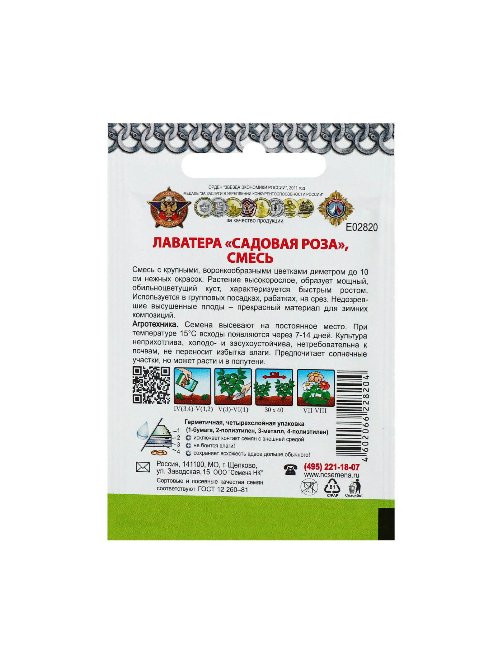 Семена цветов Лаватера "Садовая роза" смесь, серия Кольчуга, О, 0.3 г, Русский огород, Россия