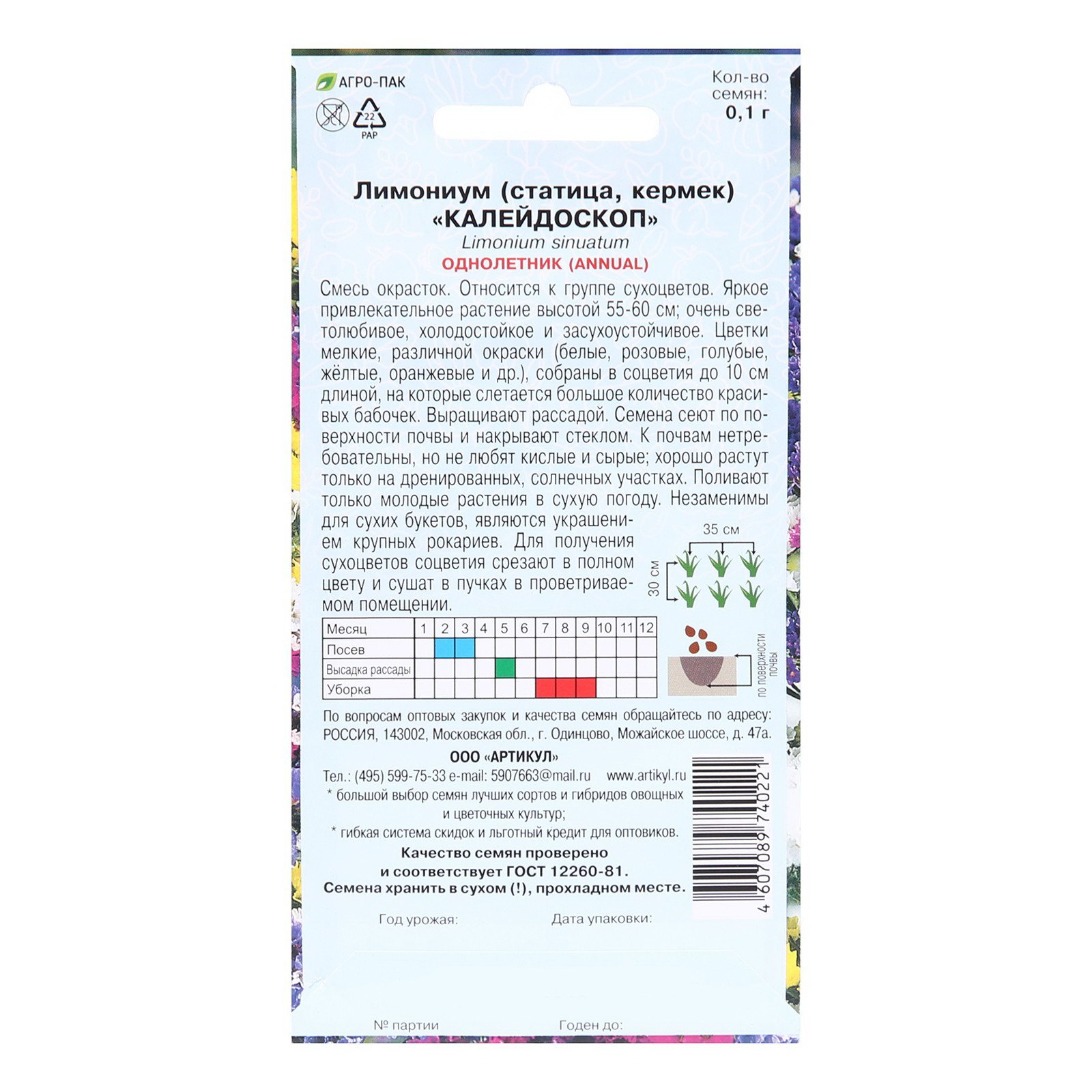 Семена цветов Лимониум "Калейдоскоп", 0.05 г, Артикул, Россия