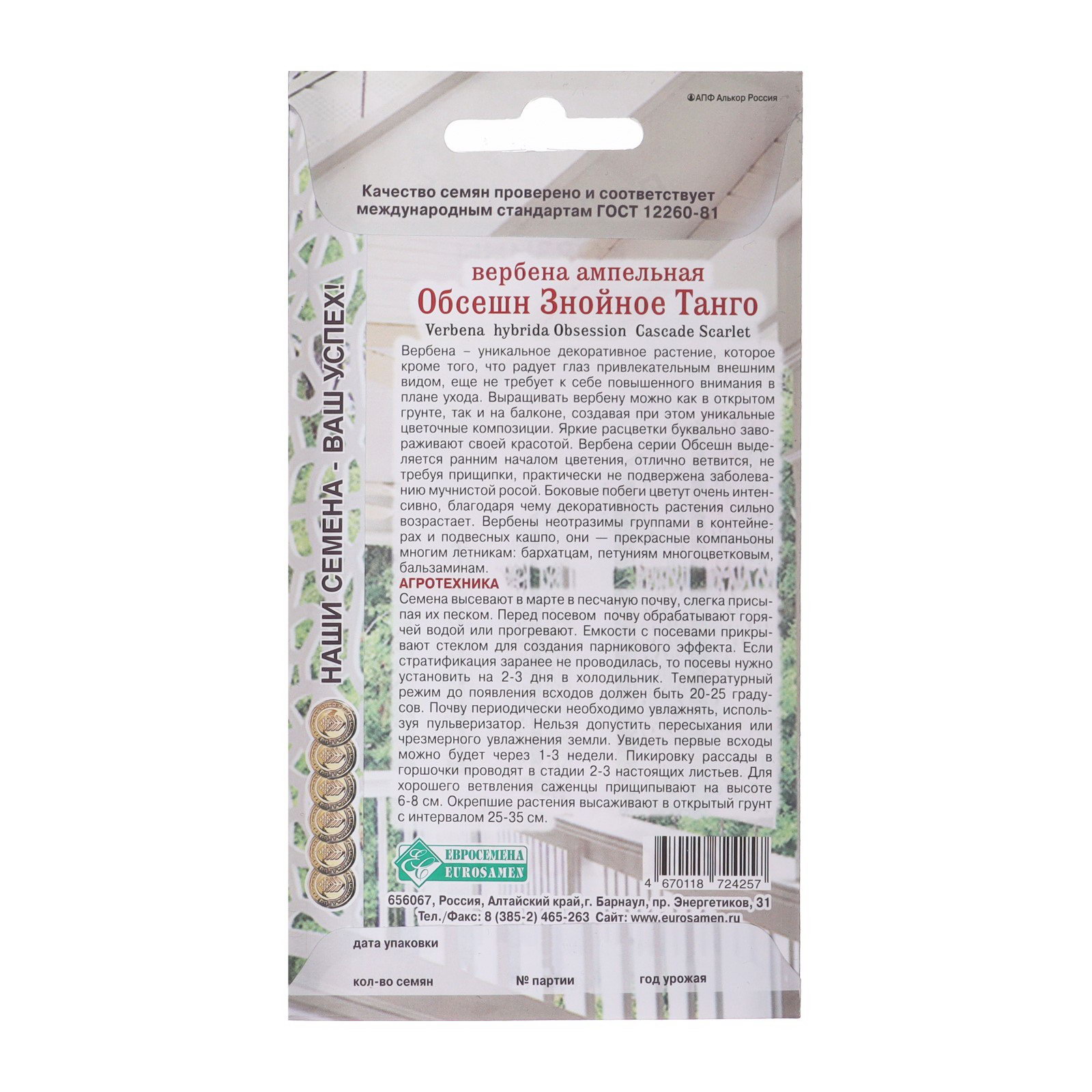 Семена цветов Вербена ампельная "Обсешн Знойное Танго", 3 шт, Евросемена, Россия