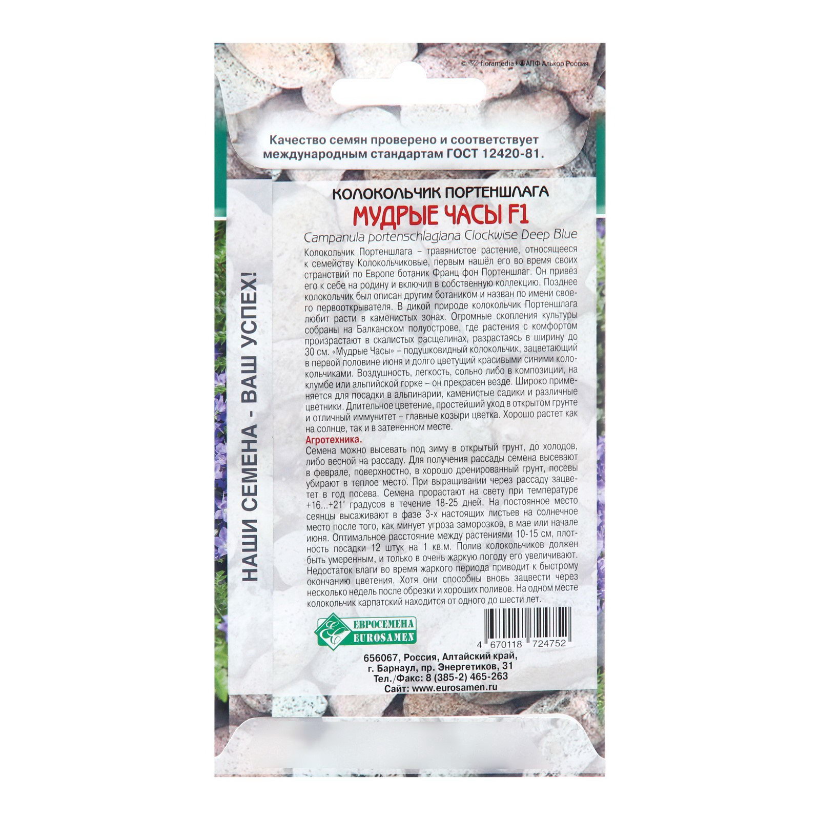 Семена Колокольчик портеншлага "Мудрые часы", 5 шт, Евросемена, Россия