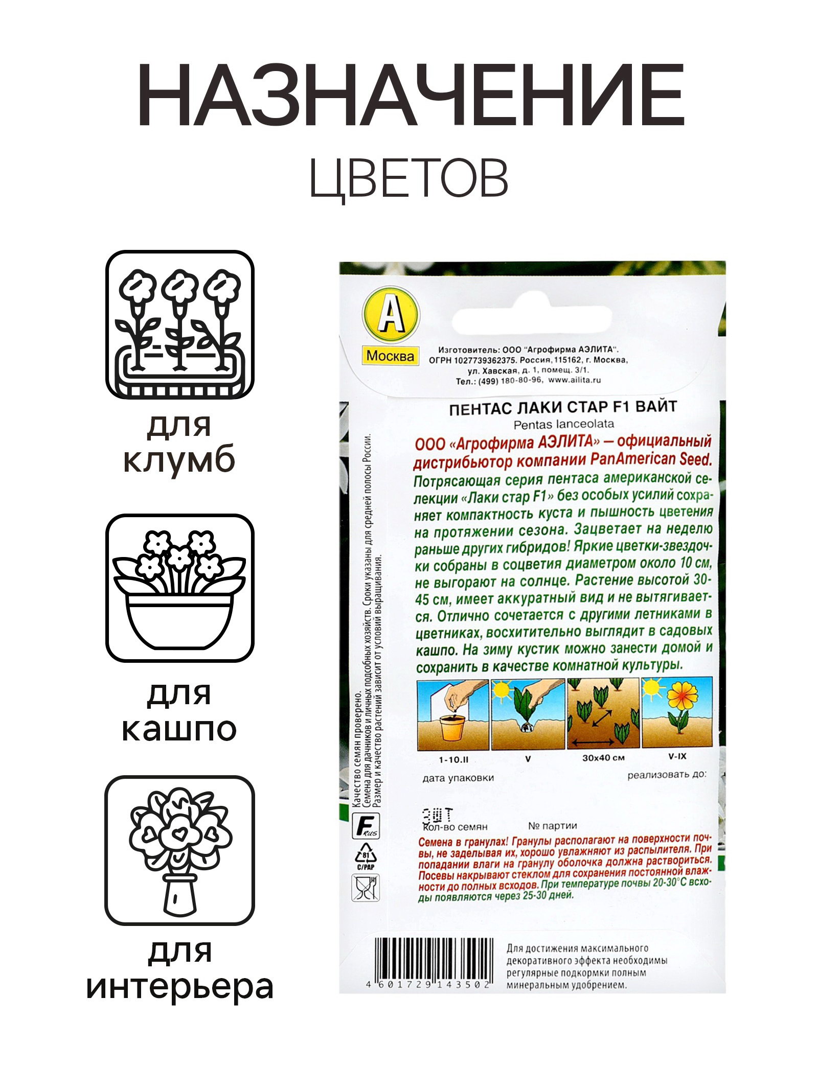 Семена цветов Пентас "Лаки стар" F1 вайт, ц/п, 3 шт, Аэлита Агро, Коста-Рика