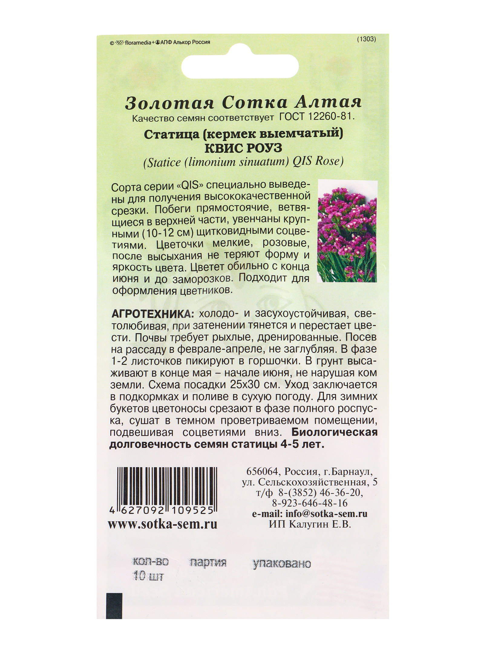 Семена Статица "Квис Роуз", 10 шт., Золотая Сотка Алтая, Россия