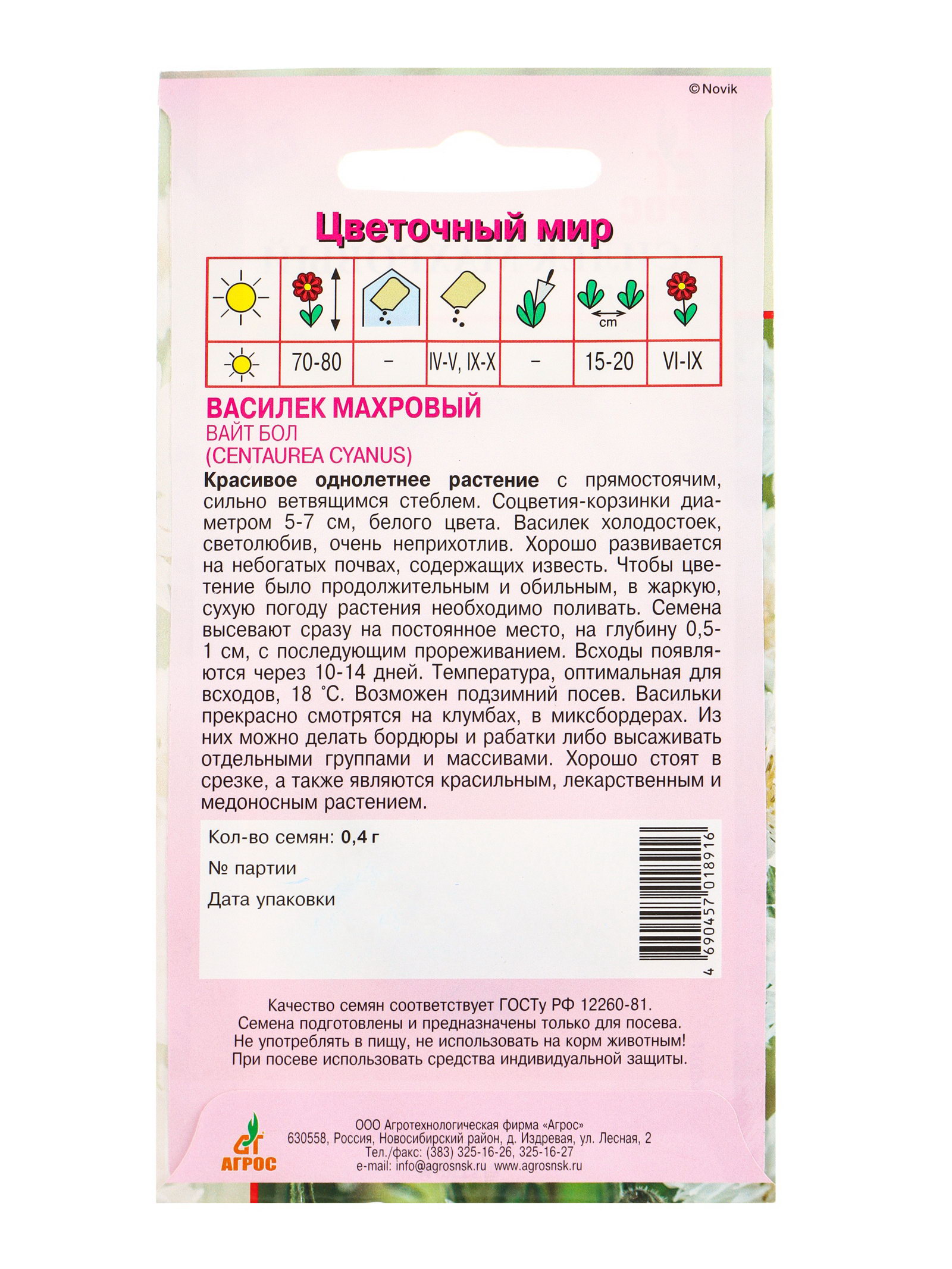 Семена Василек Вайт Бол 0.4 г, Агросс, Россия