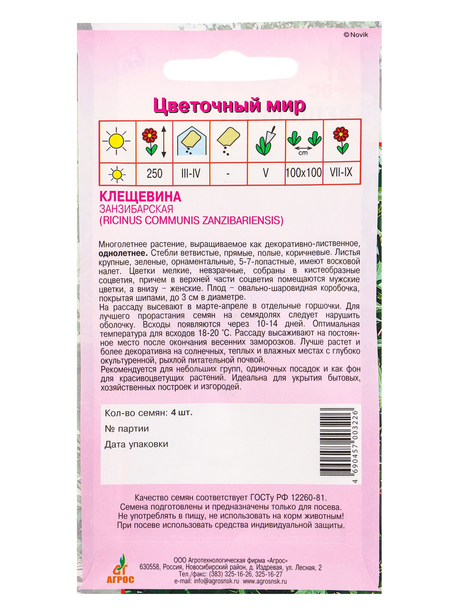 Семена Клещевина "Занзибарская" 4 шт, Агросс, Россия