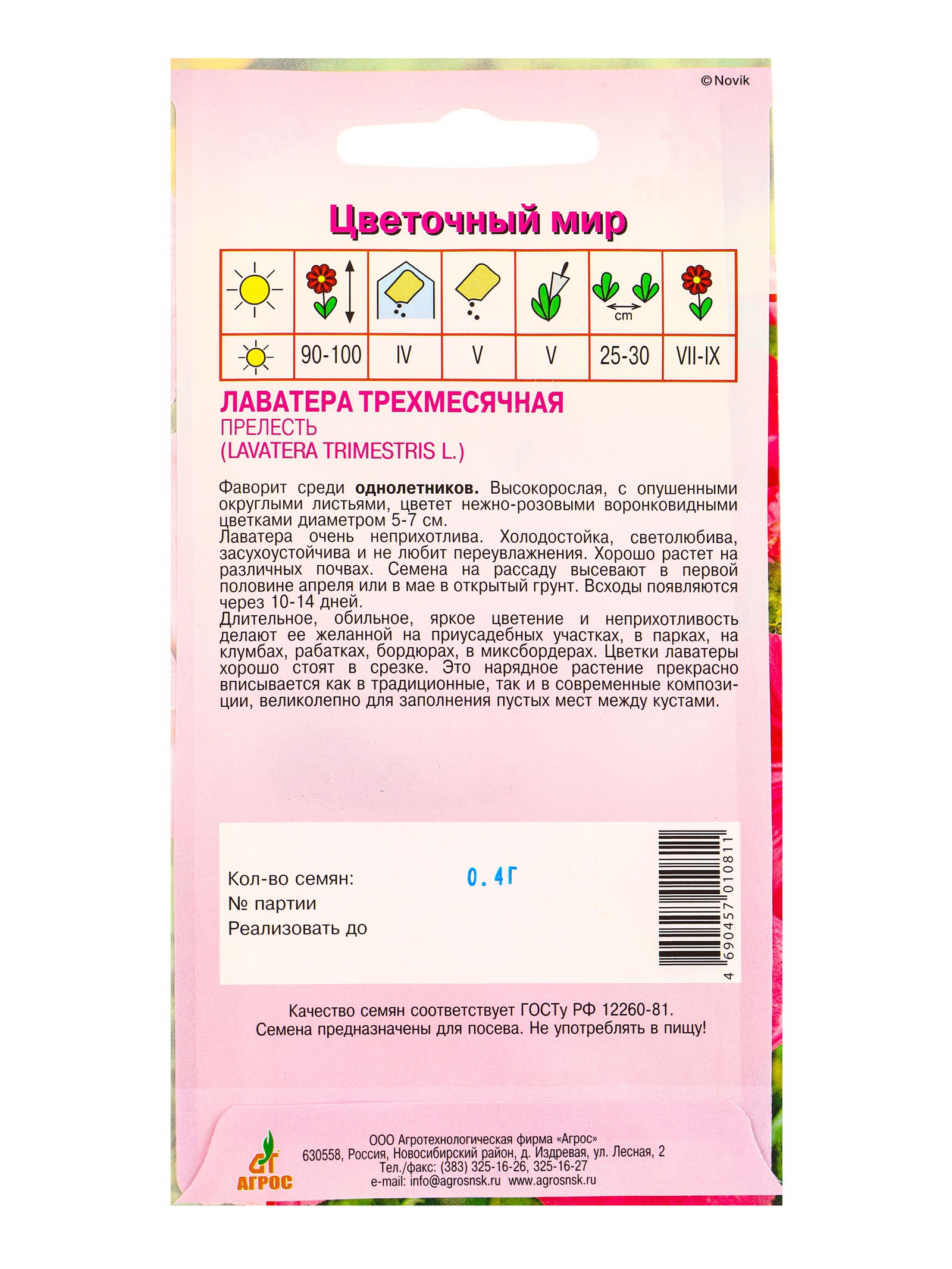 Семена Лаватера "Прелесть" 0.4 г, Агросс, Россия
