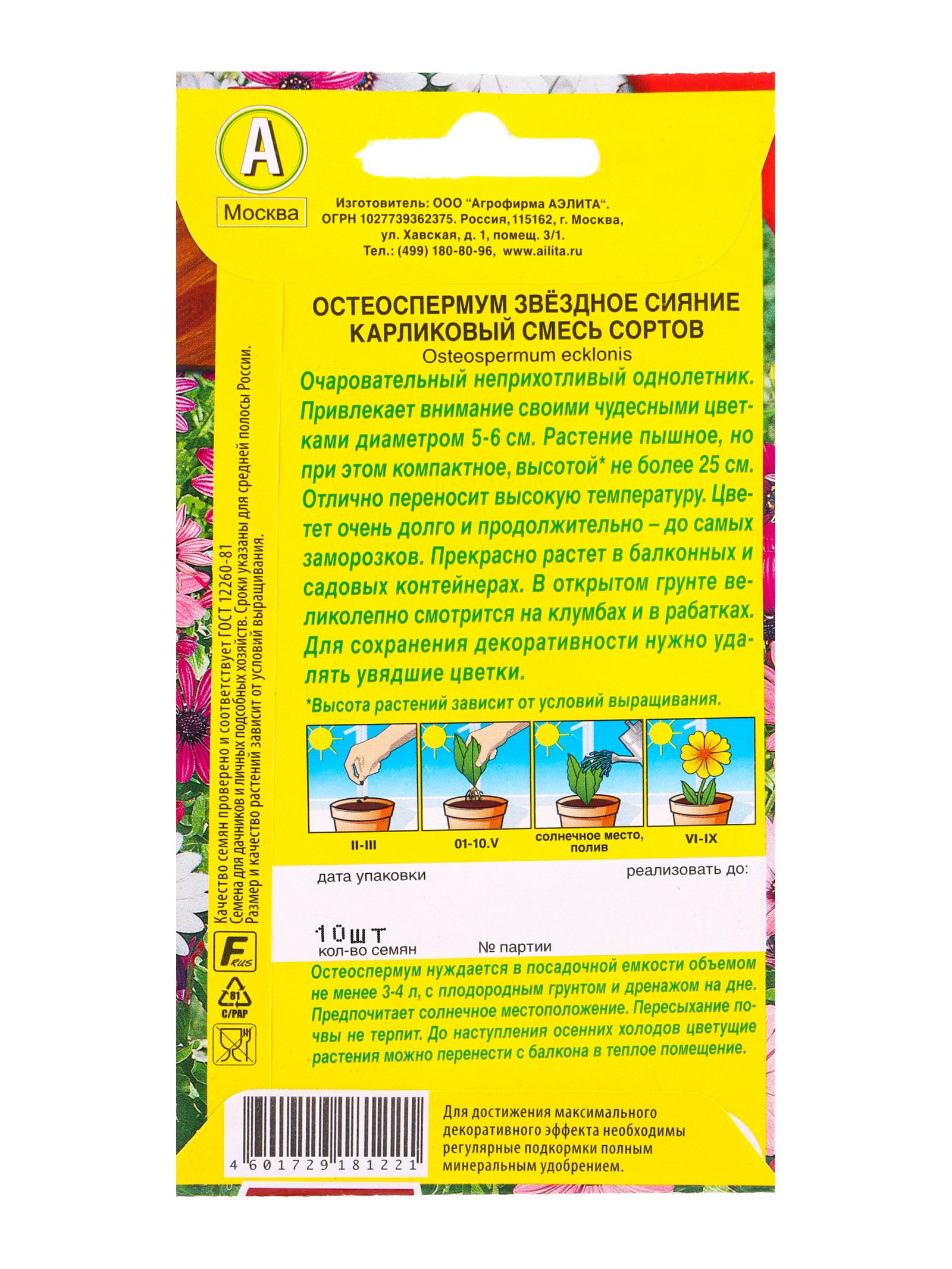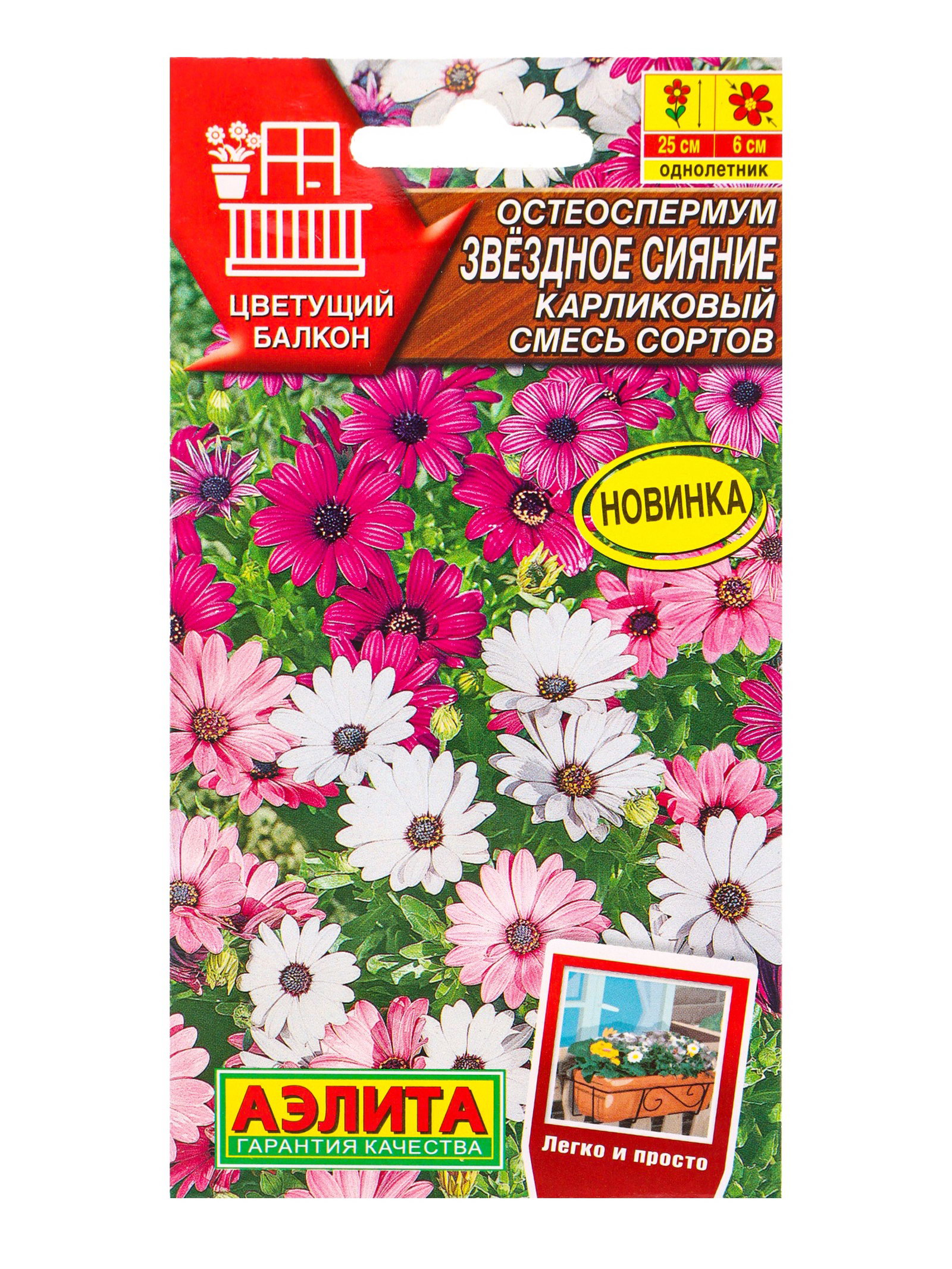 Семена цветов Остеоспермум Звездное сияние карликовый, смесь сортов Цветущий балкон, Ц/П,10 шт. 109, Агрофирма АЭЛИТА, Нидерланды