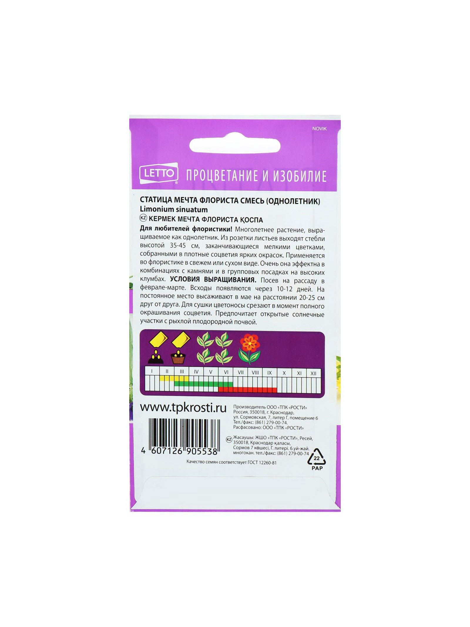 Набор семян Статица Мечта флориста, смесь, О, 5 шт., 9x17x1 см., Мой выбор, Россия