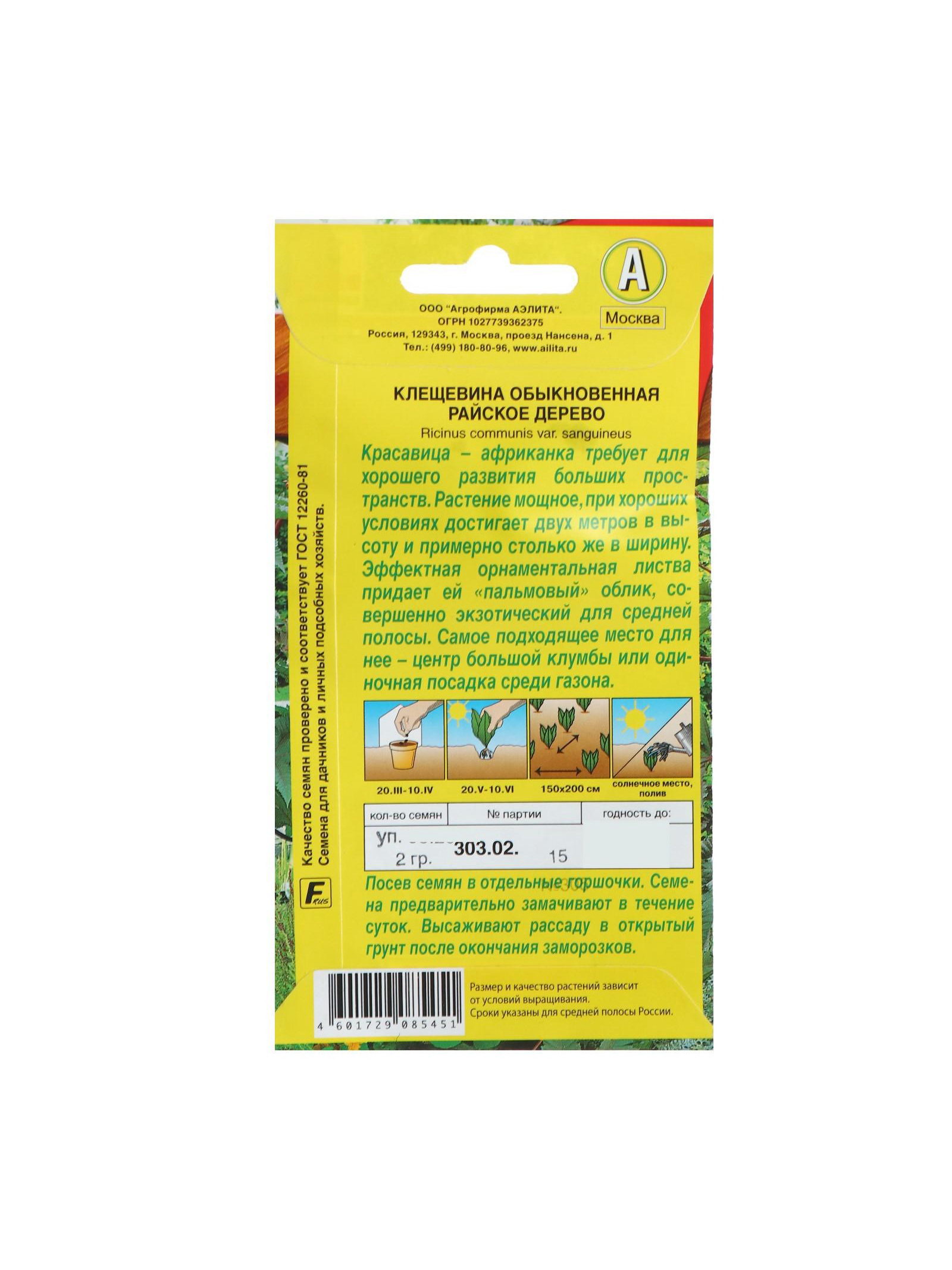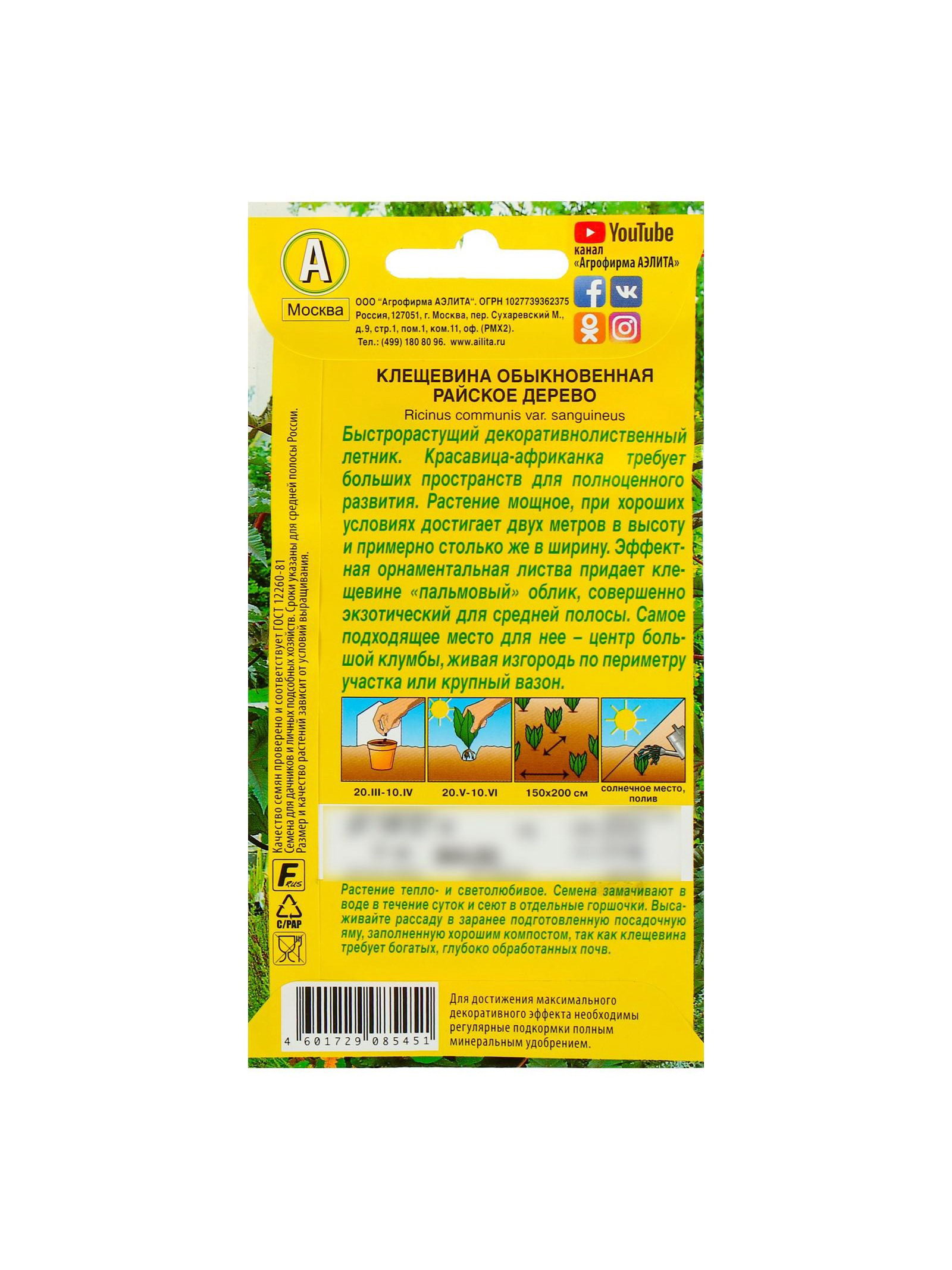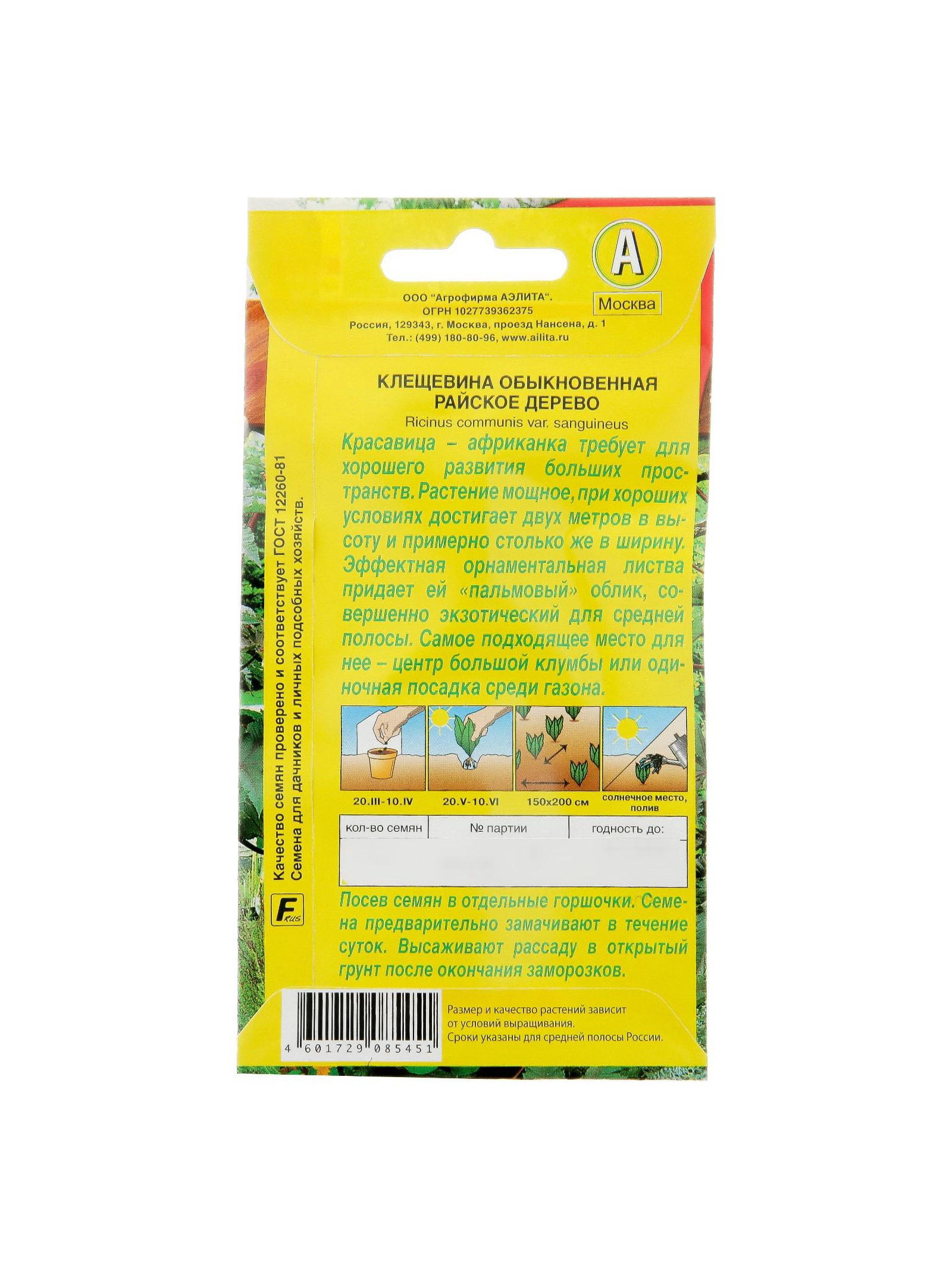 Набор семян Клещевина "Райское дерево", О, 5 шт., 9x17x1 см., Мой выбор, Россия