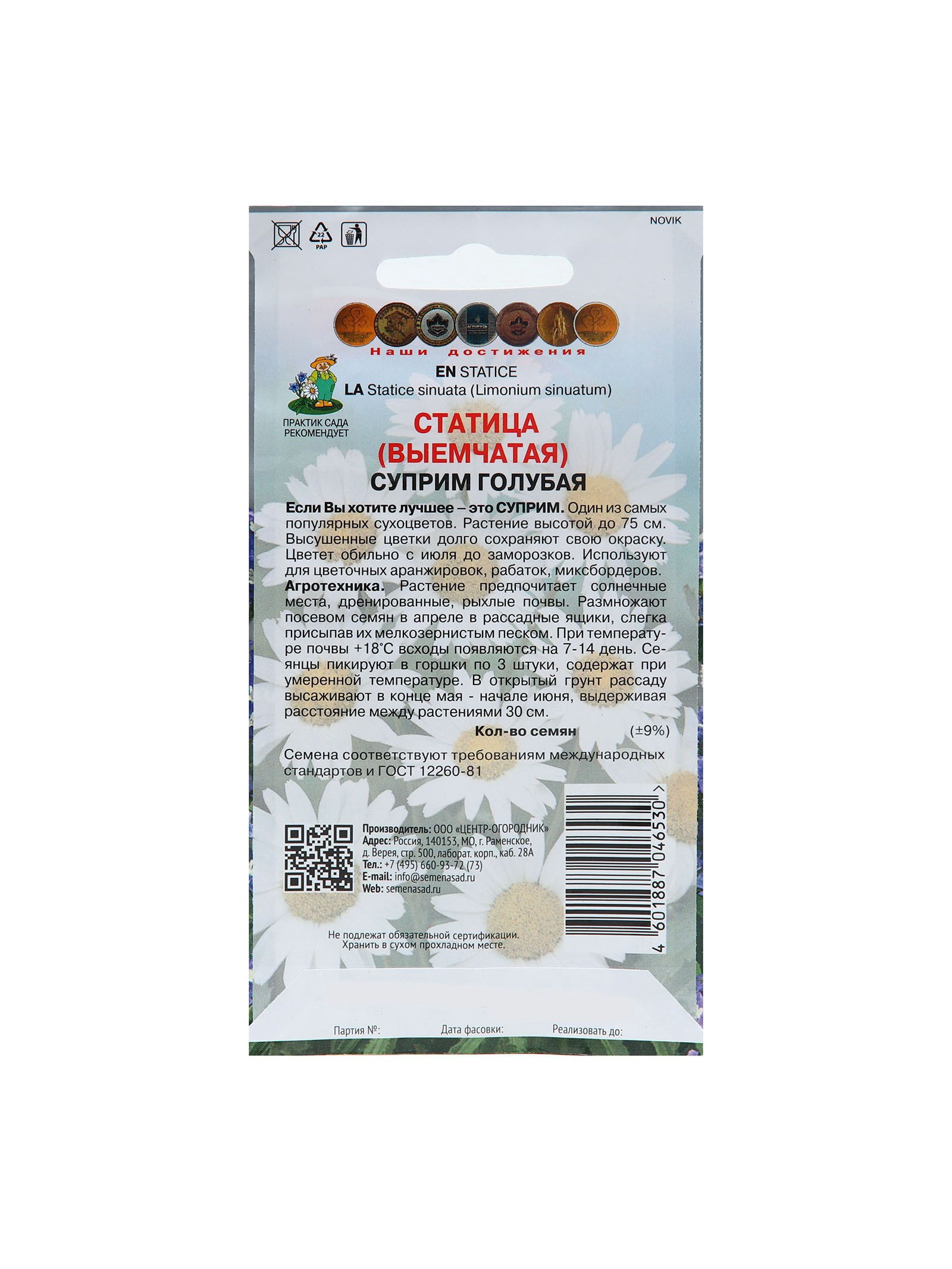 Набор семян Статица "Суприм голубая", 5 шт., 9x17x1 см., Мой выбор, Россия