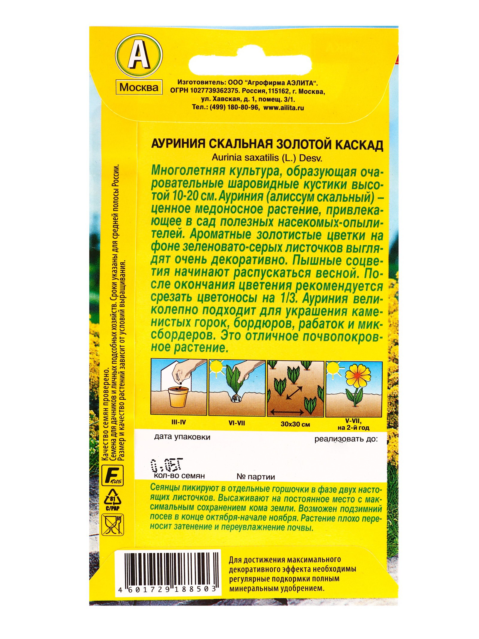 Семена цветов Ауриния скальная Золотой каскад, Ц/П,0.05 г, Агрофирма АЭЛИТА, Нидерланды