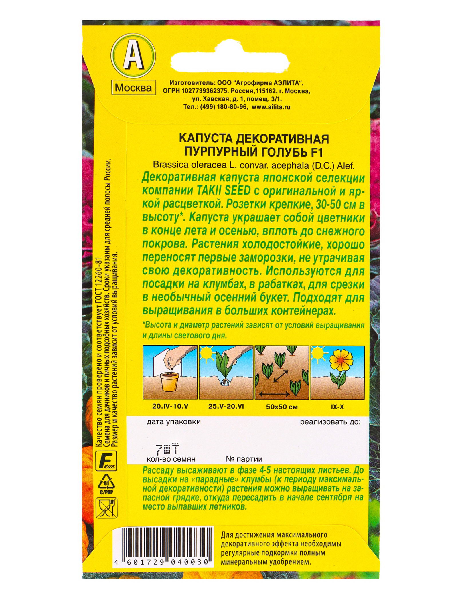 Семена цветов Капуста декоративная Пурпурный голубь F1 С. Takii Seed, Ц/П,7 шт., Агрофирма АЭЛИТА, Япония