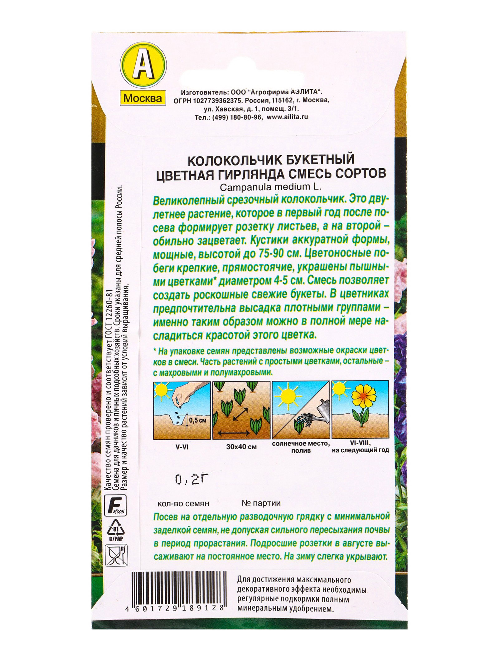 Семена цветов Колокольчик букетный Цветная гирлянда, смесь сортов Дв Золотая серия, Ц/П,0.2 г 109455, Агрофирма АЭЛИТА, Россия