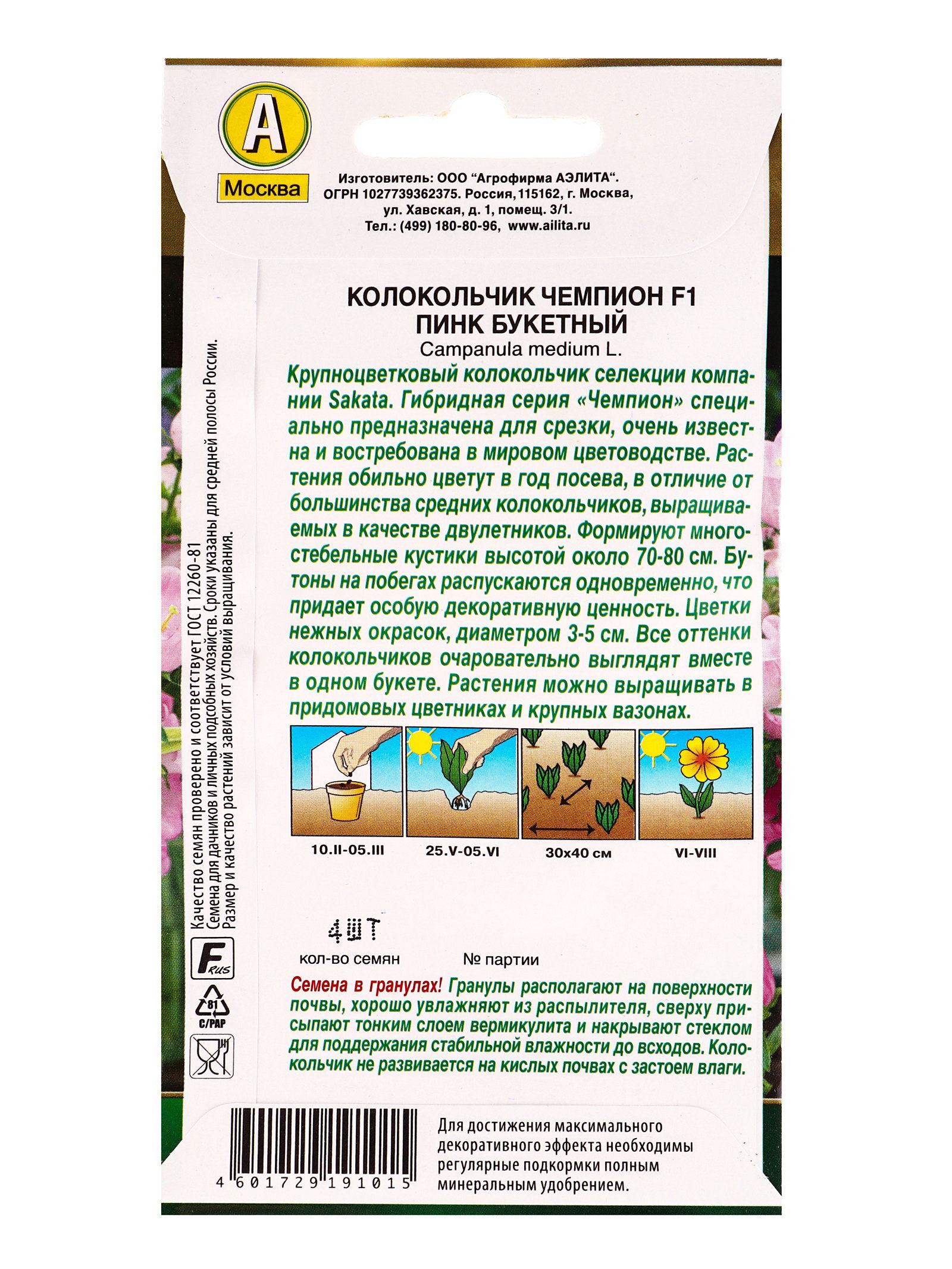 Семена цветов Колокольчик Чемпион F1 пинк букетный, Агрофирма АЭЛИТА, Япония