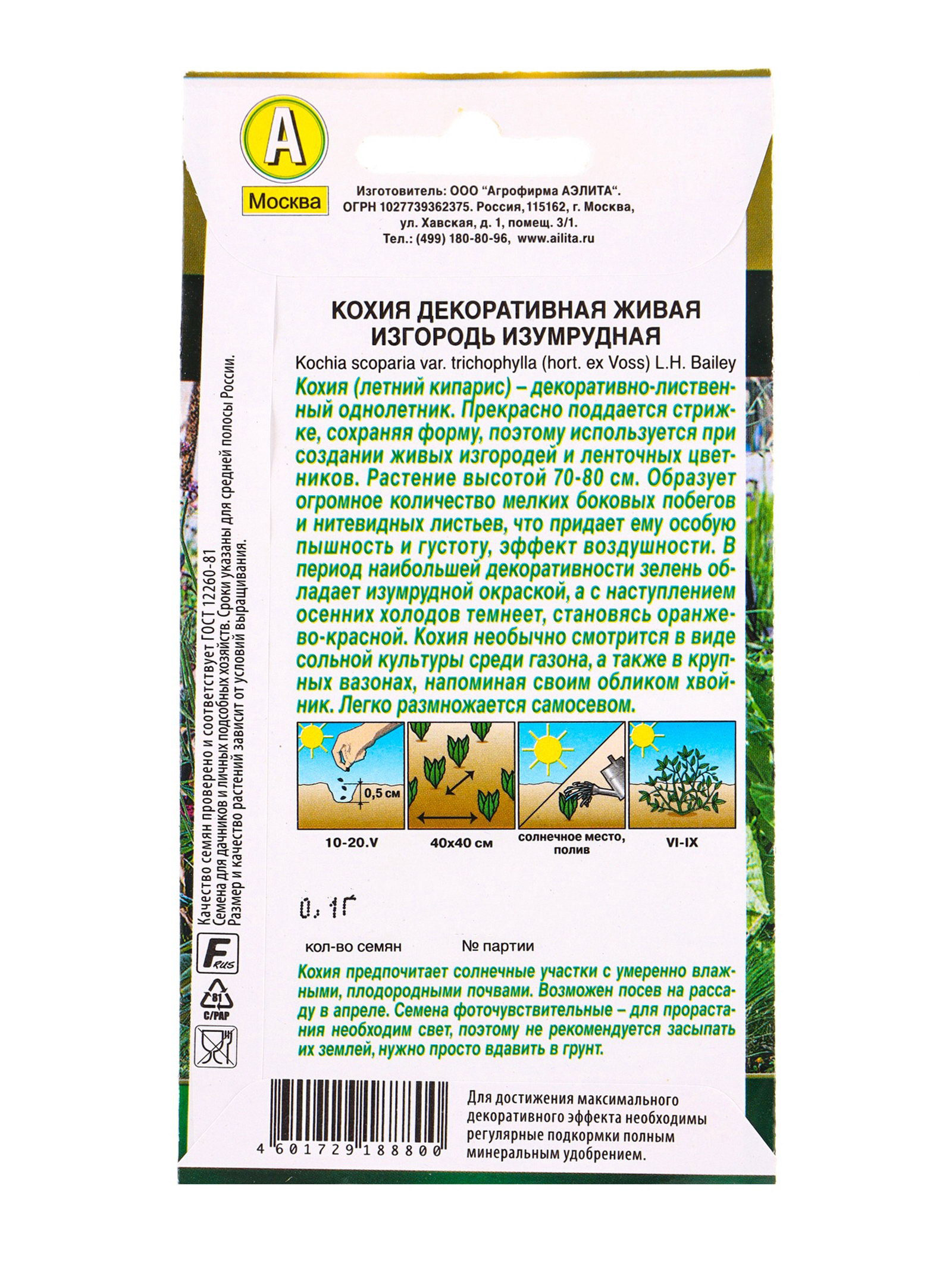 Семена цветов Кохия Живая изгородь изумрудная Золотая серия, Ц/П,0.1 г, Агрофирма АЭЛИТА, Нидерланды