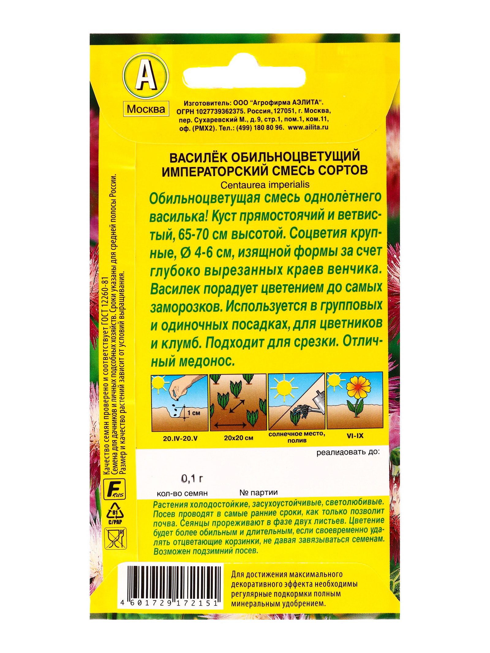 Семена цветов Василек Императорский, смесь сортов, Ц/П,0.1 г, Агрофирма АЭЛИТА, Германия