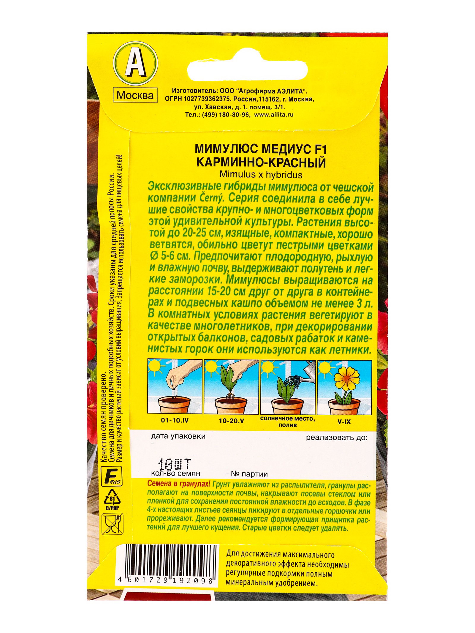 Семена цветов Мимулюс Медиус F1 карминно-красный, Агрофирма АЭЛИТА, Чехия