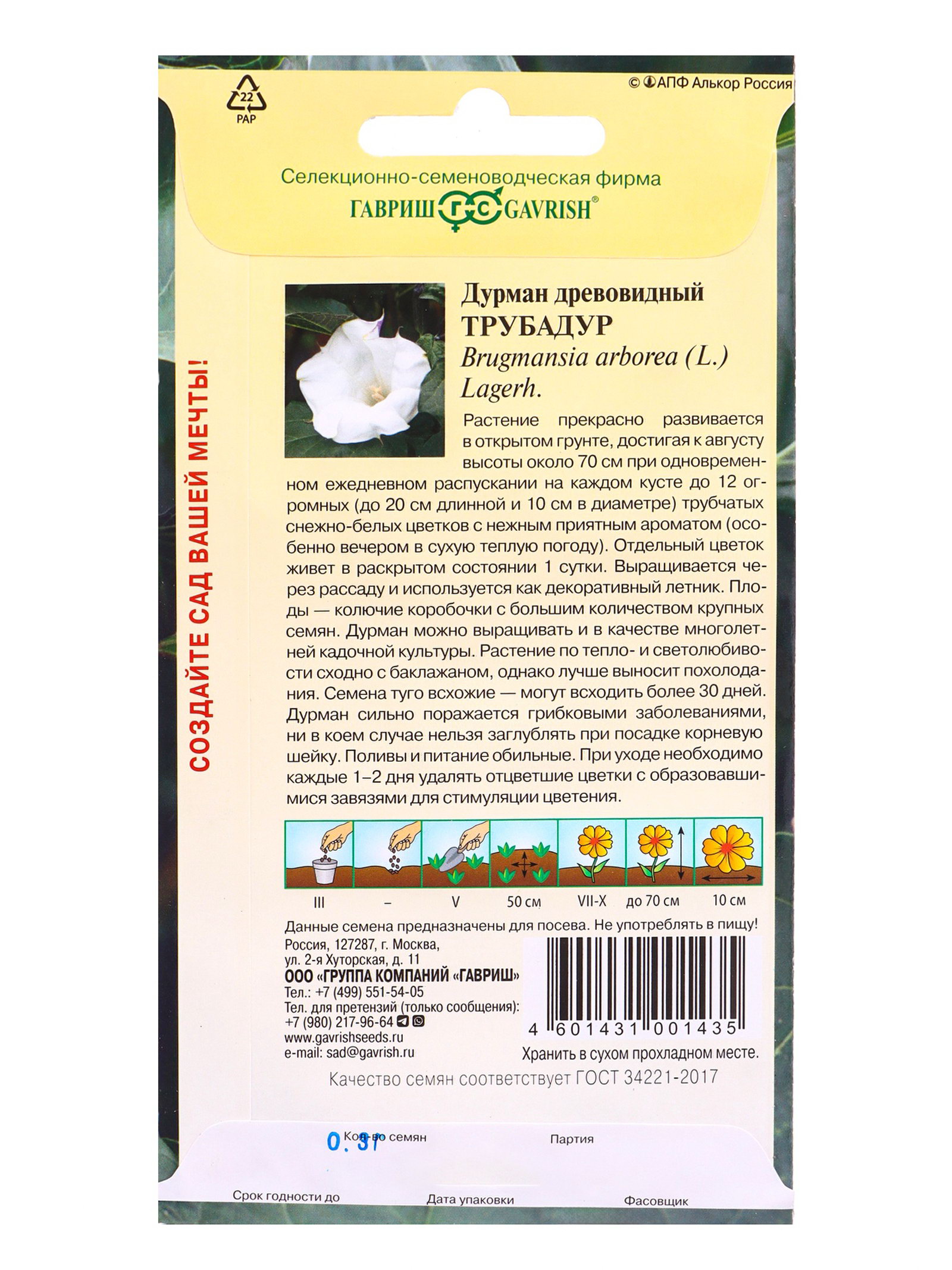 Семена цветов Дурман Трубадур 0.3 г, Гавриш, Россия