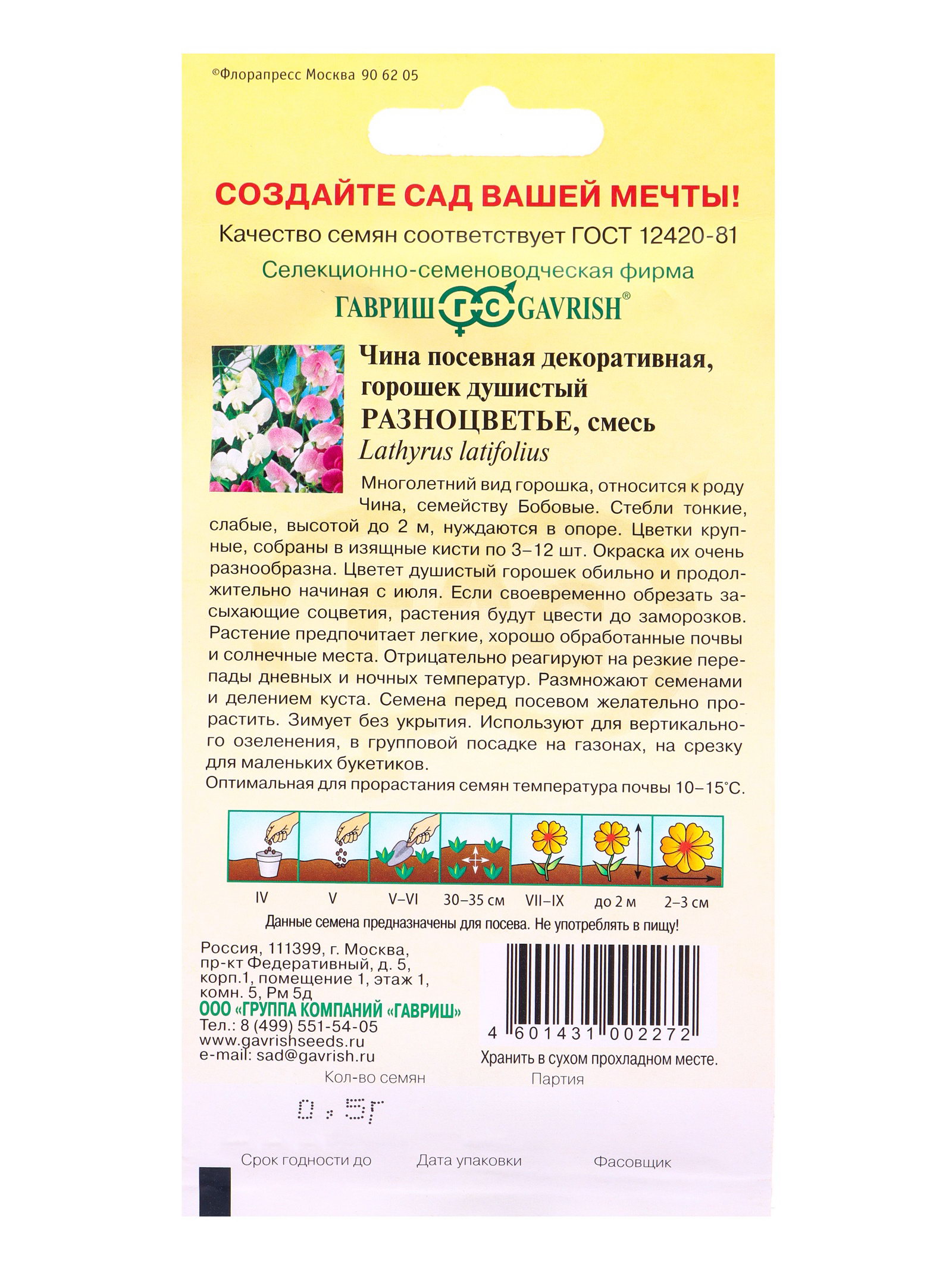 Семена цветов Чина посевная декоративная, Гавриш, Россия