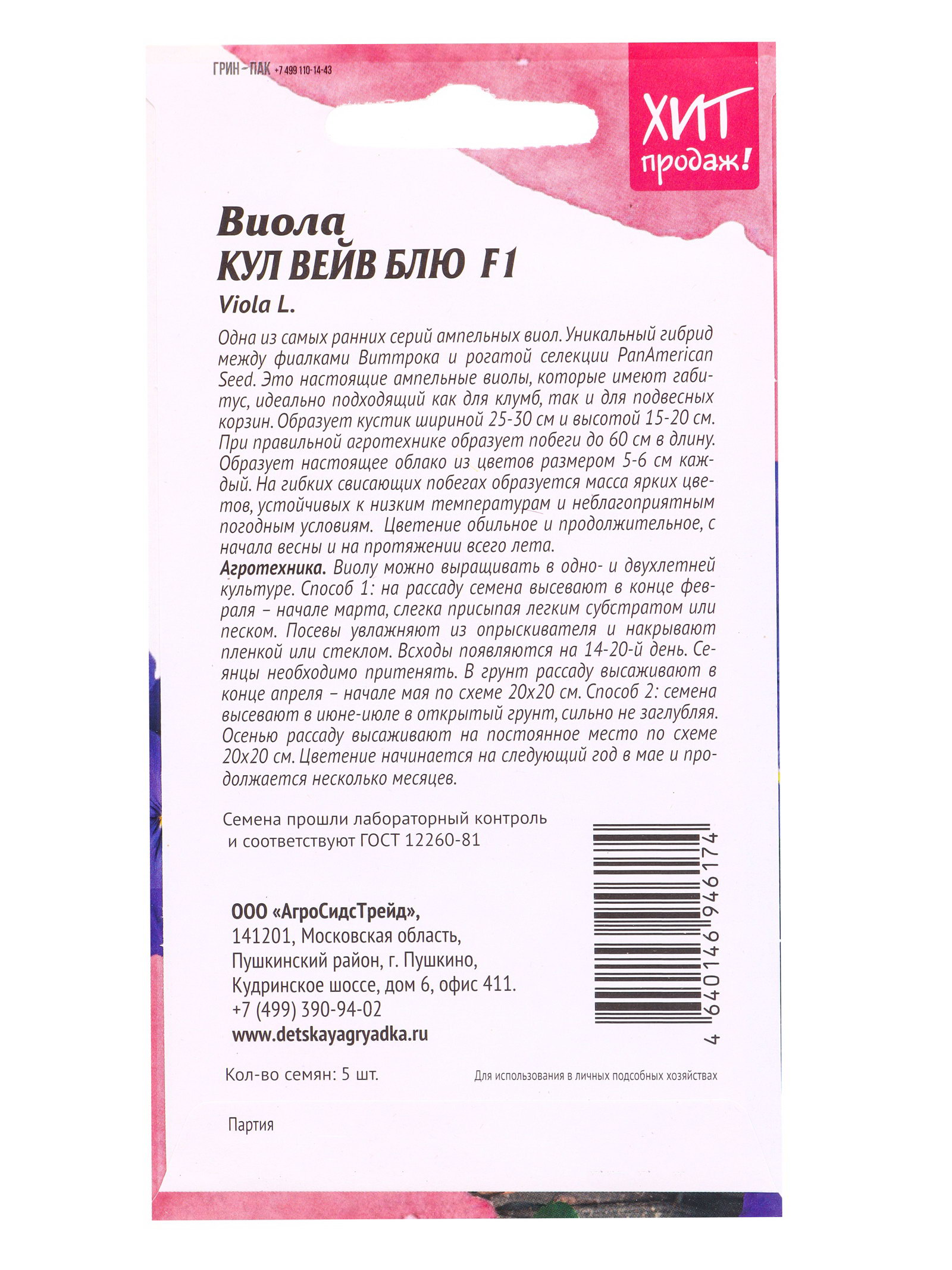 Семена цветов Виола Кул Вейв Блю F1 5 шт, Агросидстрейд, Китай