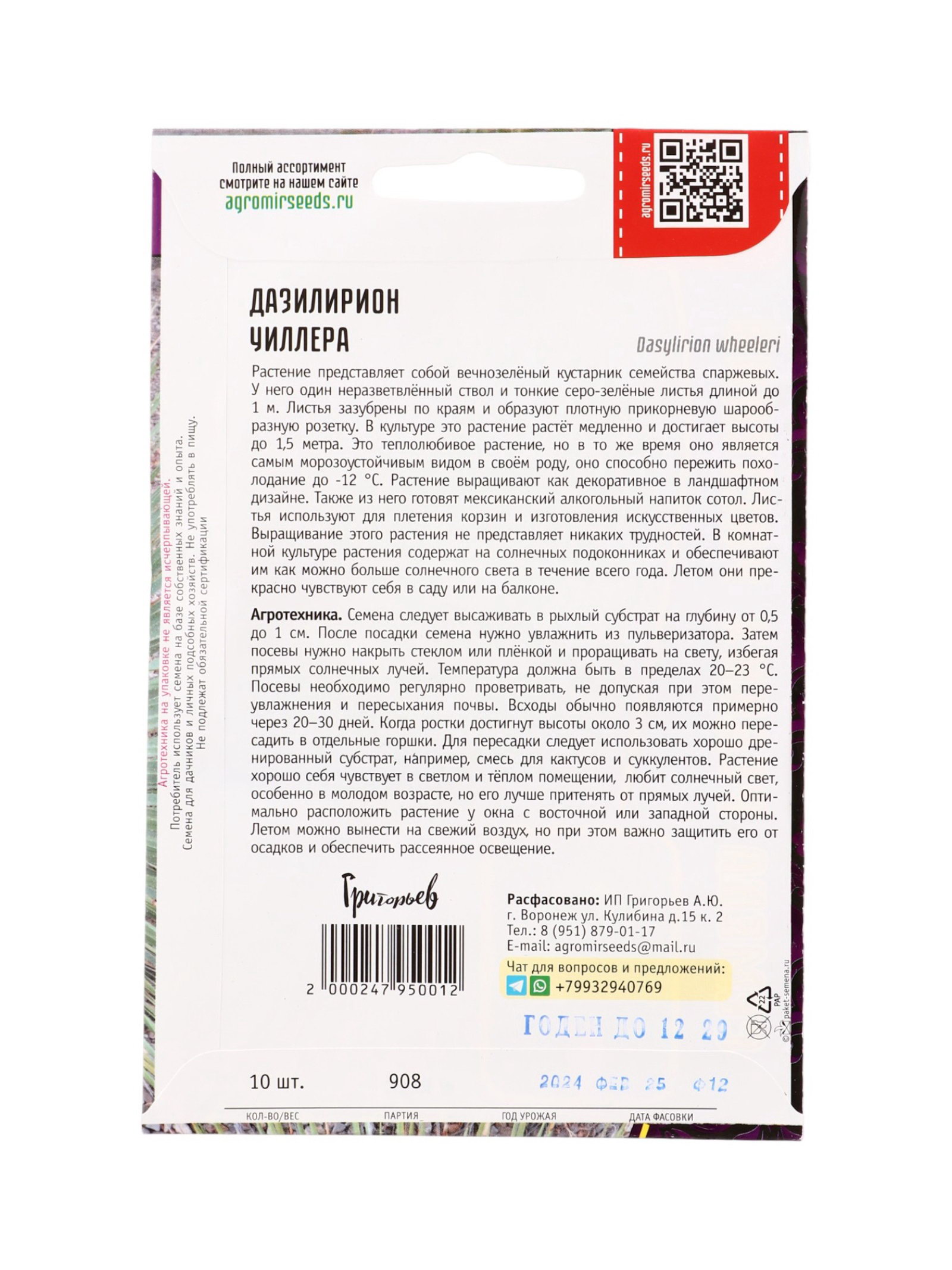Семена цветов Дазилирион Уиллера 10 шт. / НОВИНКА 12.29 гр, Григорьев, Россия