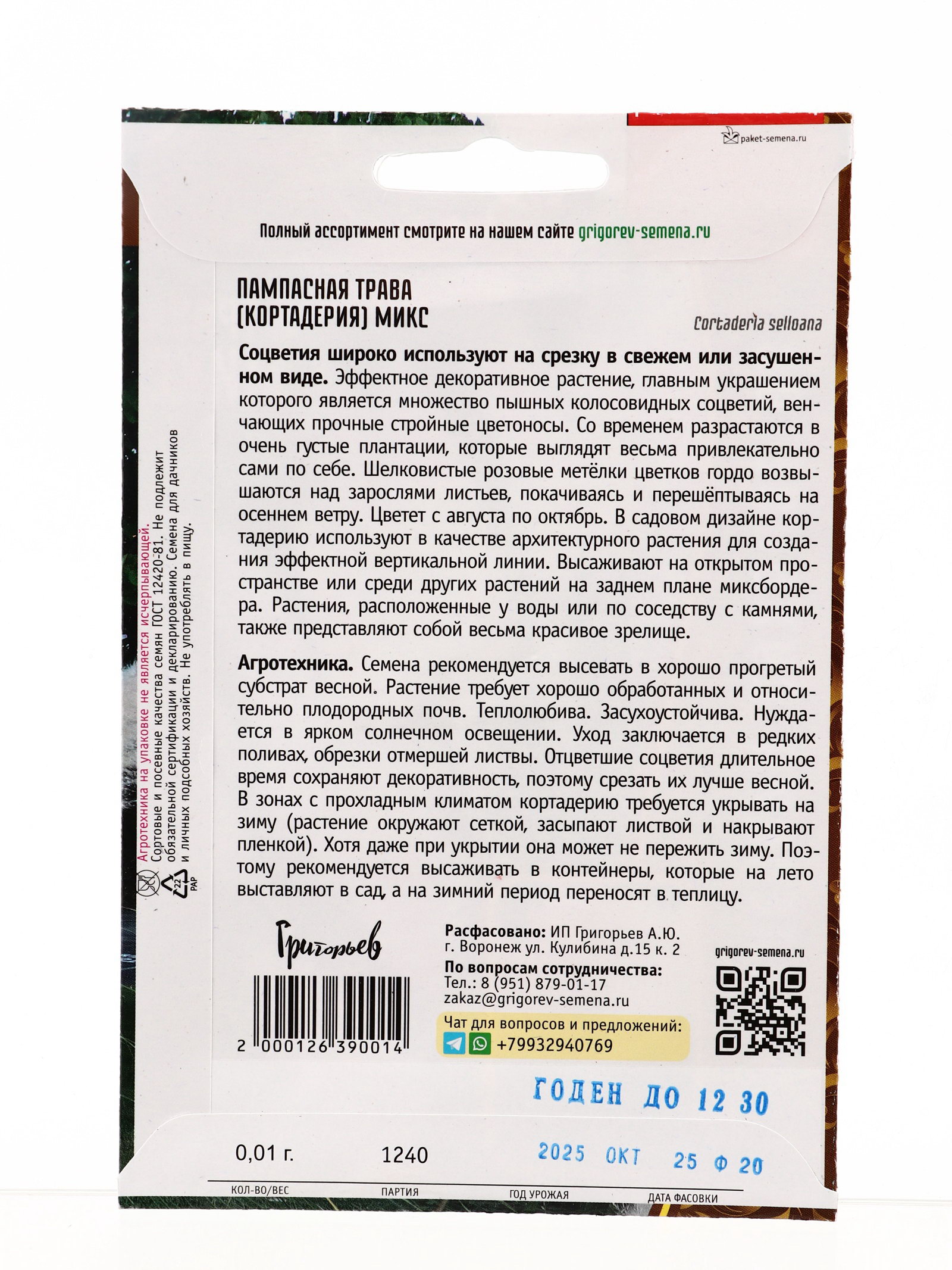 Семена Пампасная трава Микс, Григорьев, Россия
