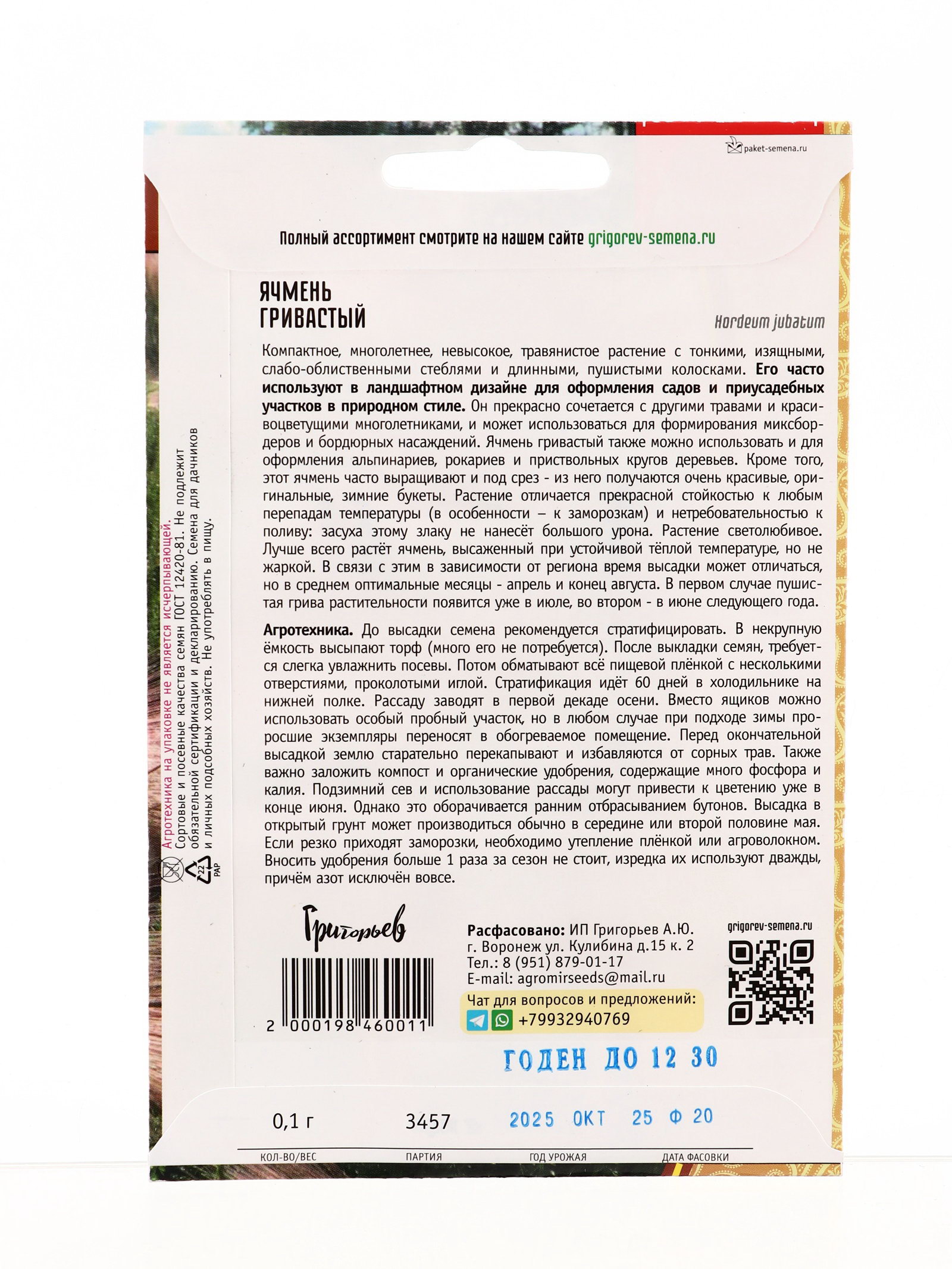Семена Ячмень Гривастый 0.1г. 12.29 гр, Григорьев, Россия