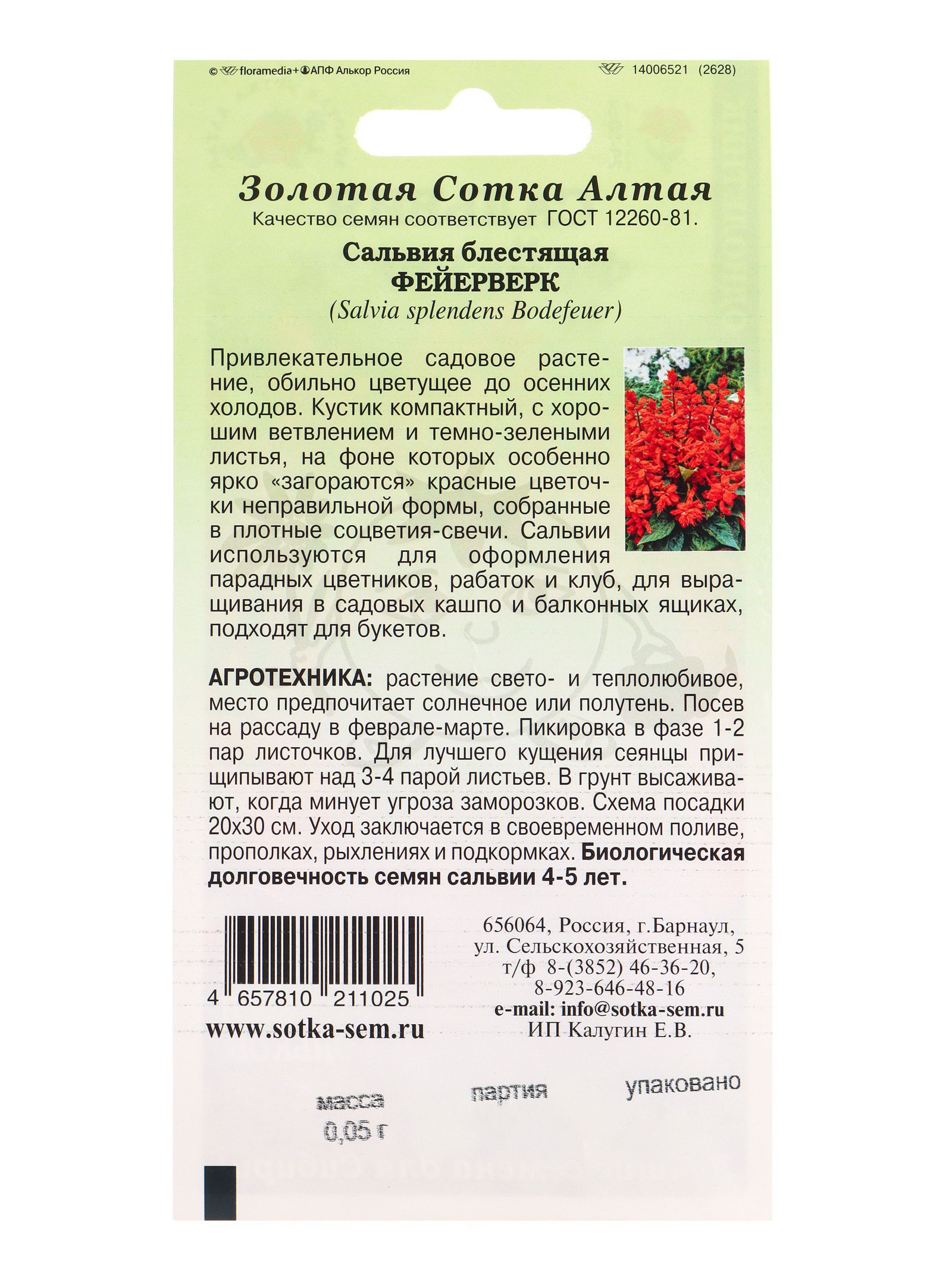 Семена Сальвия "Фейерверк", 0.05 г, Золотая Сотка Алтая, Россия