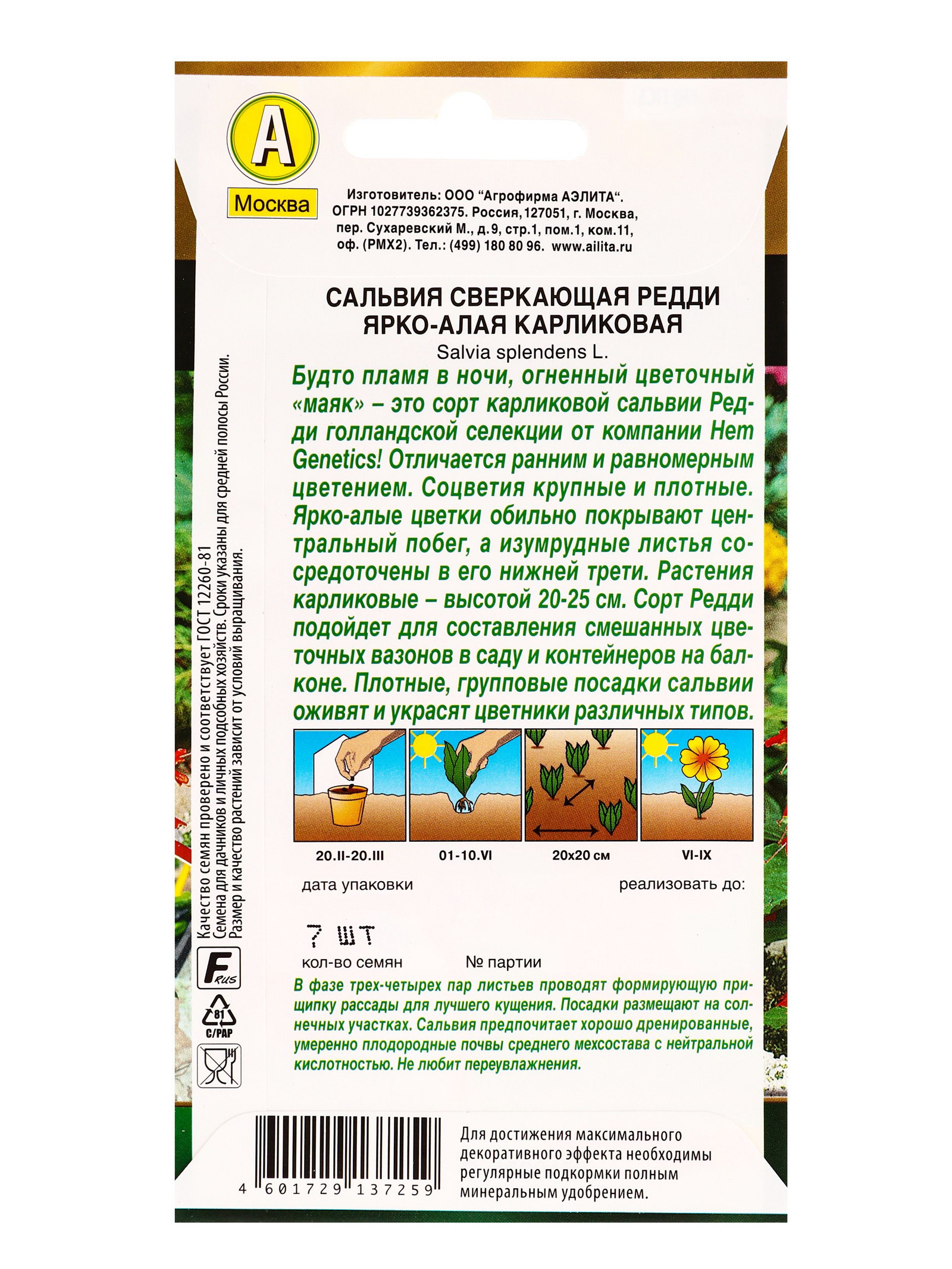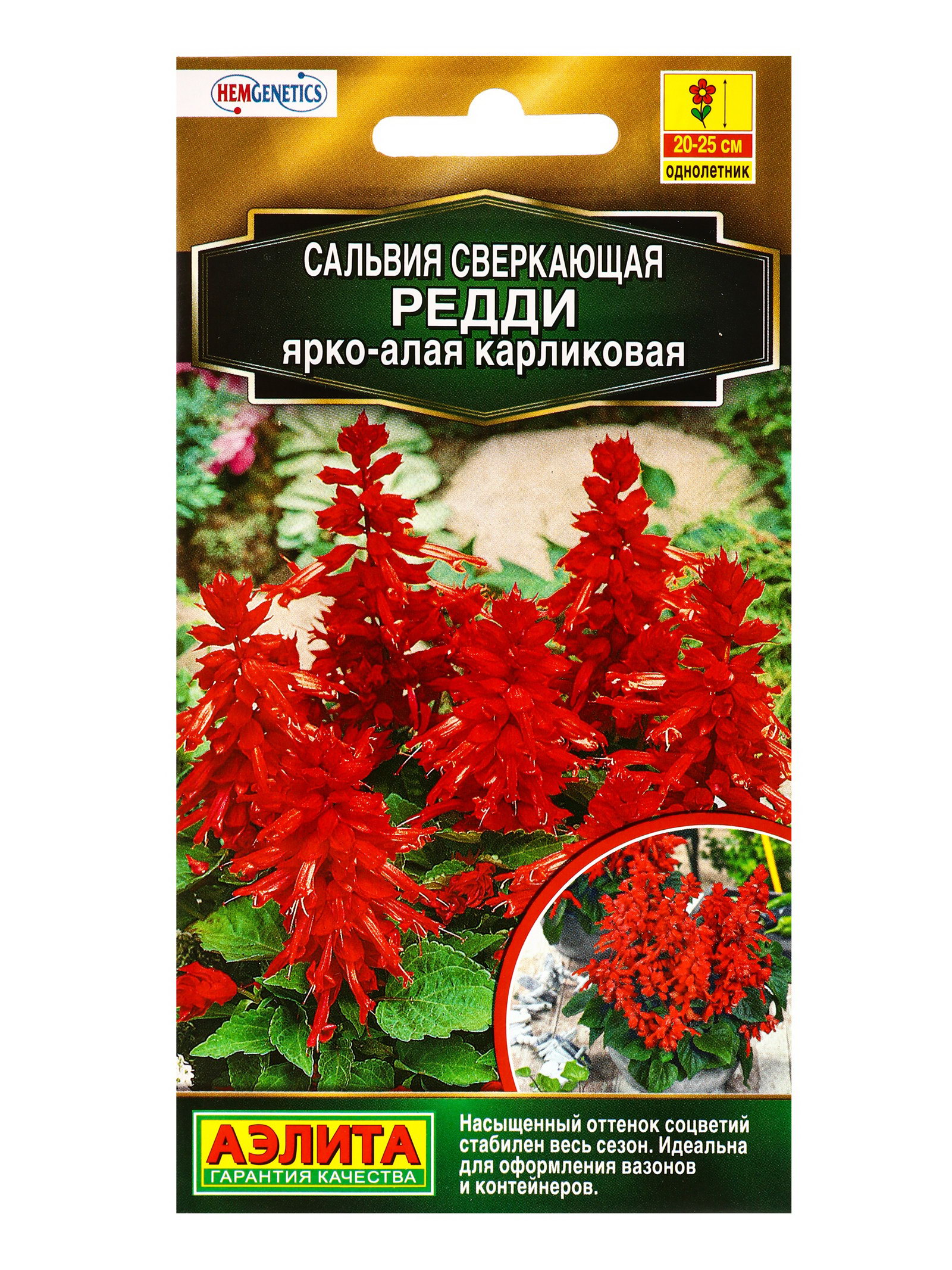 Семена цветов Сальвия Редди ярко-алая карликовая С. Hem Genetics Золотая серия, Ц/П,7 шт., Агрофирма АЭЛИТА, Индонезия