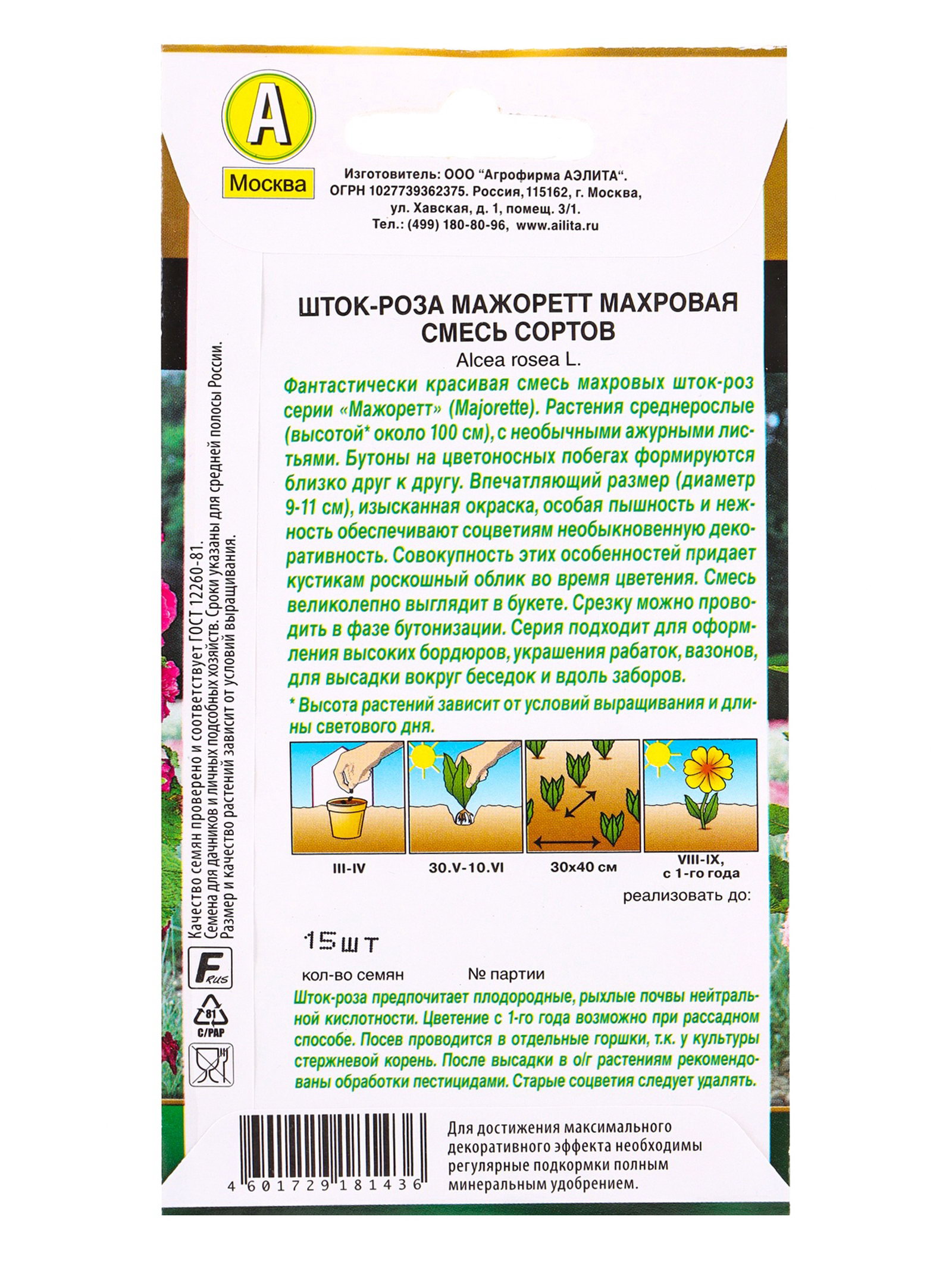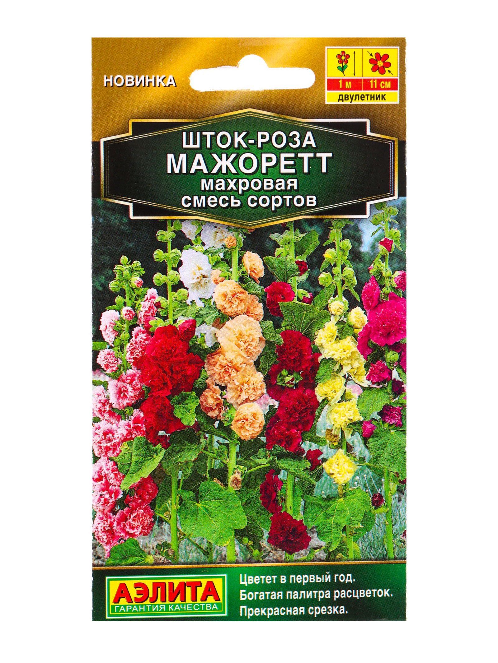 Семена цветов Шток-роза Мажоретт махровая, смесь сортов Золотая серия, Ц/П,15 шт., Агрофирма АЭЛИТА, Нидерланды