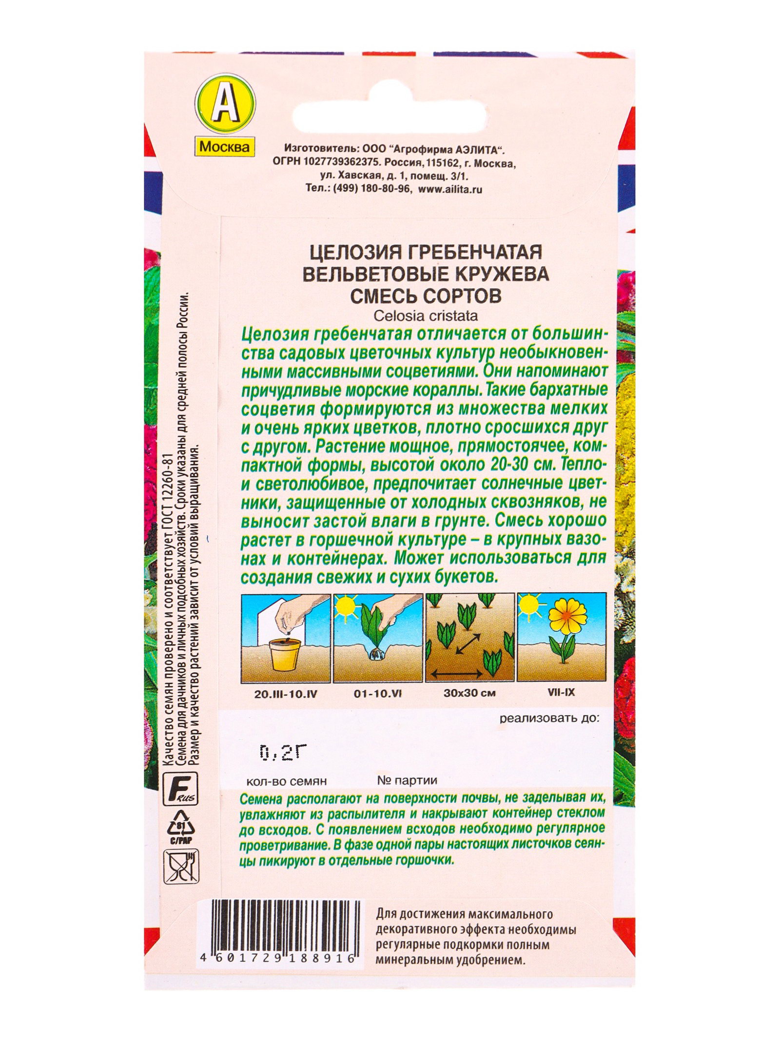 Семена цветов Целозия гребенчатая Вельветовые кружева, Британская коллекция цветов, Ц/П,0.2 г 109459, Агрофирма АЭЛИТА, Нидерланды