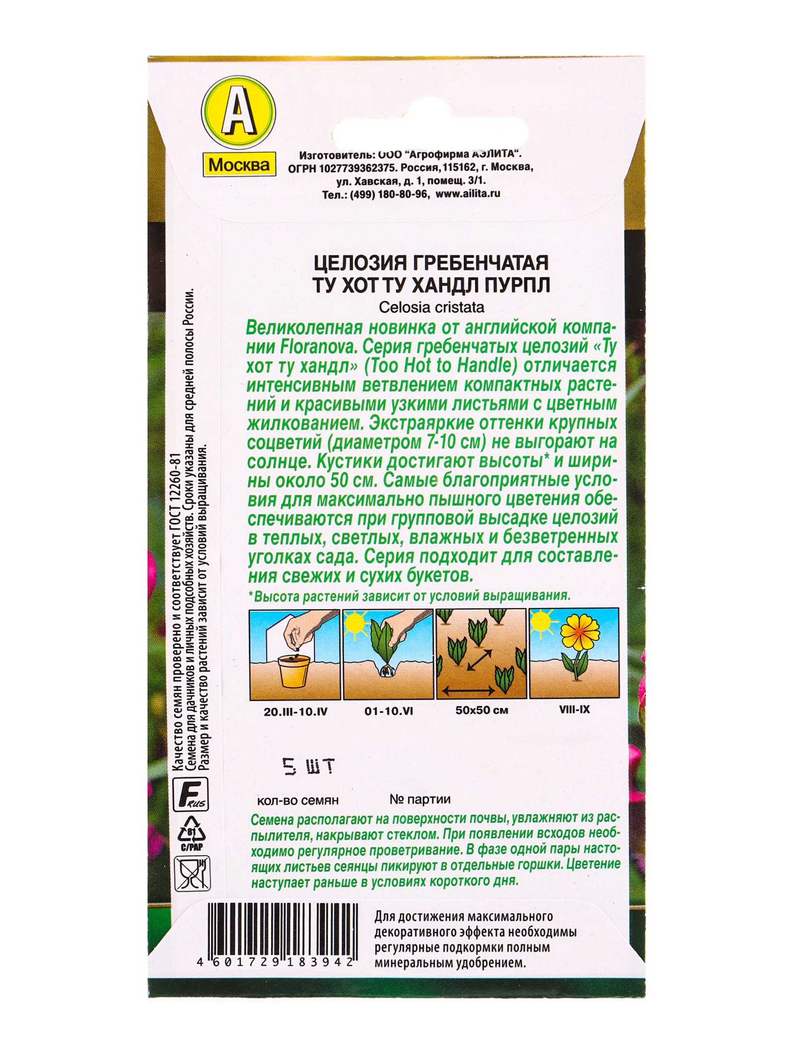 Семена цветов Целозия гребенчатая Ту хот ту хандл пурпл С. Floranova Золотая серия, Ц/П,5 шт. 10945, Агрофирма АЭЛИТА, Индия