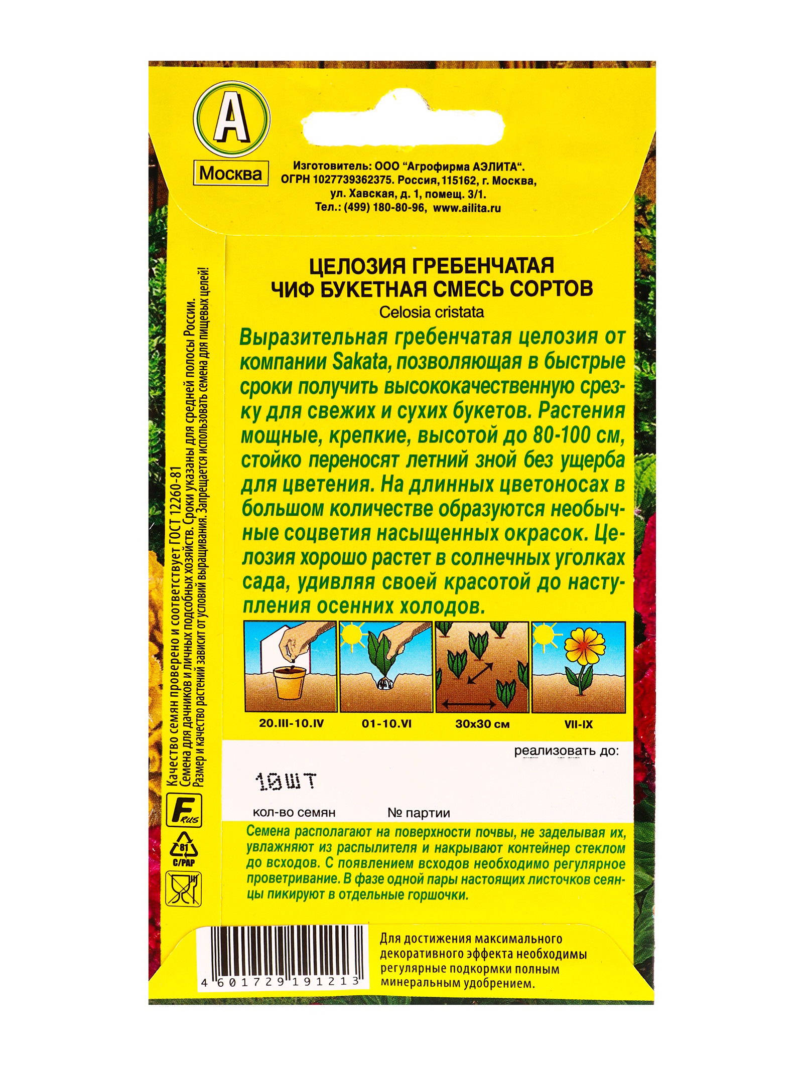 Семена цветов Целозия гребенчатая Чиф букетная, смесь сортов С. Sakata, Ц/П,10 шт., Агрофирма АЭЛИТА, Россия
