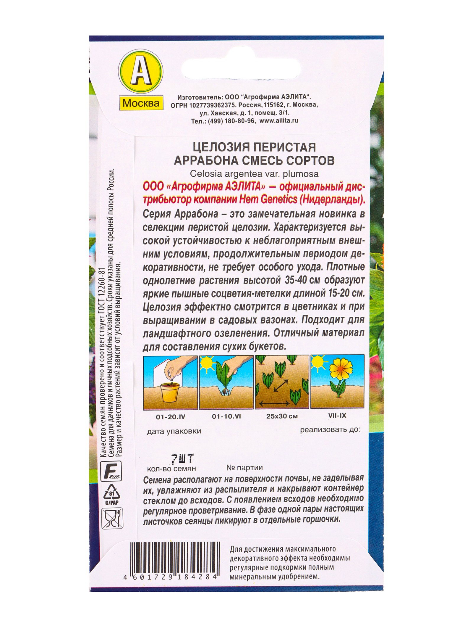 Семена цветов Целозия перистая Аррабона, смесь сортов Спецсерия Hem Genetics, Ц/П,7 шт., Агрофирма АЭЛИТА, Китай