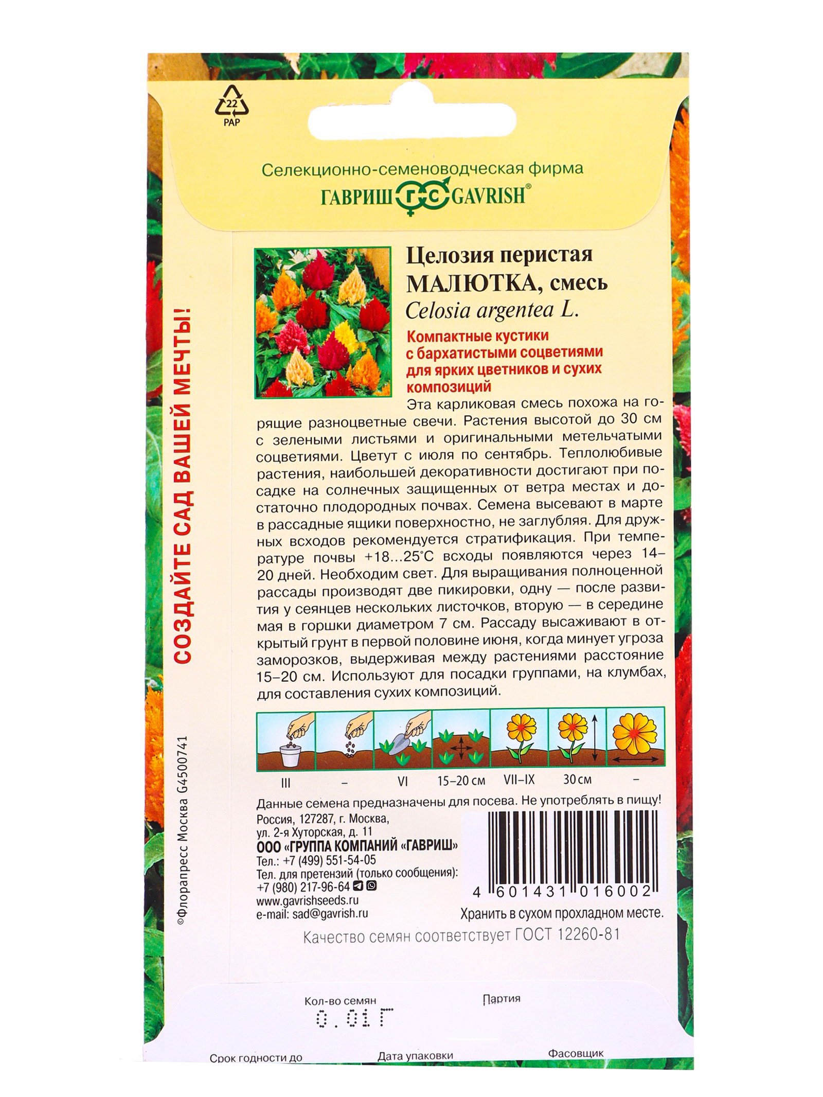 Семена цветов Целозия Малютка, перистая*, смесь 0.01 г, Гавриш, Россия