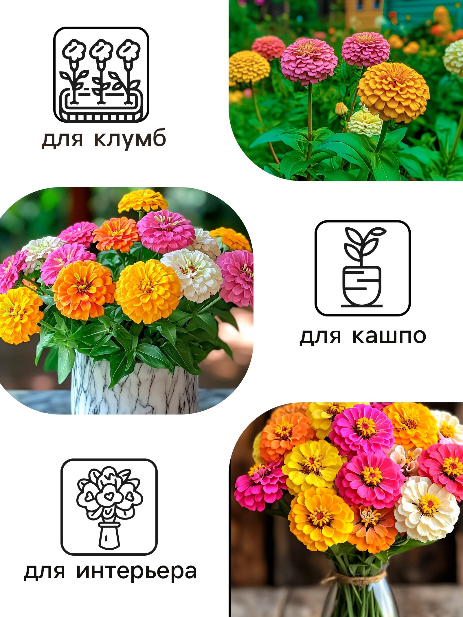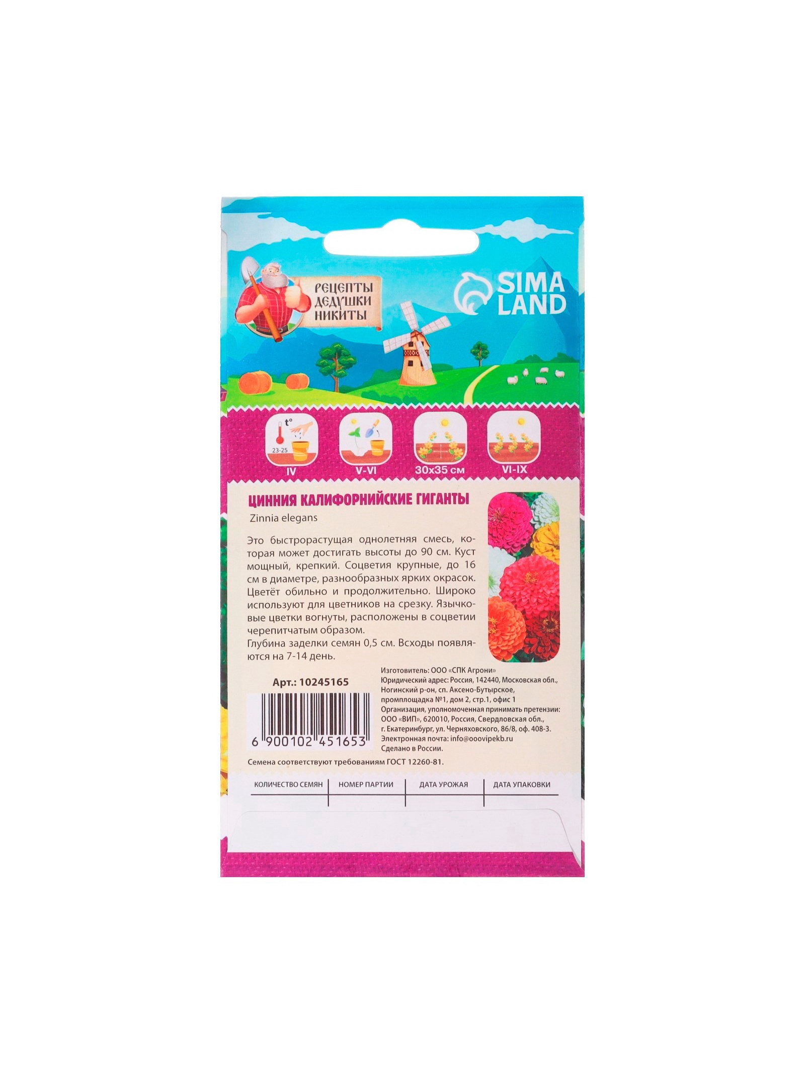 Семена цветов цинния "Калифорнийские гиганты", смесь, 0.3 г, Рецепты дедушки Никиты, Россия