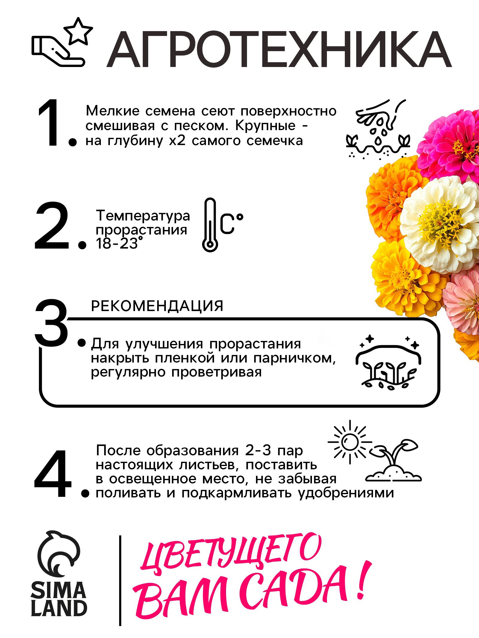 Вид: Семечки, Цинния Посев на рассаду: Апрель, Март Период цветения: Лето, Осень Цветение период: Август, Июль, Июнь, Сентябрь Размер упаковки: 8 x 0.1 x 15 см. Цвет: МИКС Температурное ограничение: Нет Махровые: Да Сухоцвет: Нет Место выращивания: Универсальный По форме куста: Кустовая Вегетация: Многолетники Назначение: Для создания цветников, клумбы Отношение к свету: Светолюбивые Разновидность: Цветущее Нуждаются ли в стратификации: Нет Посев (посадка) в грунт: Май Упаковка: Цветная tnved: 1209300000 Высота растений: До 30 см Семена цветов Цинния "Калифорнийские гиганты" смесь, 0,3 г