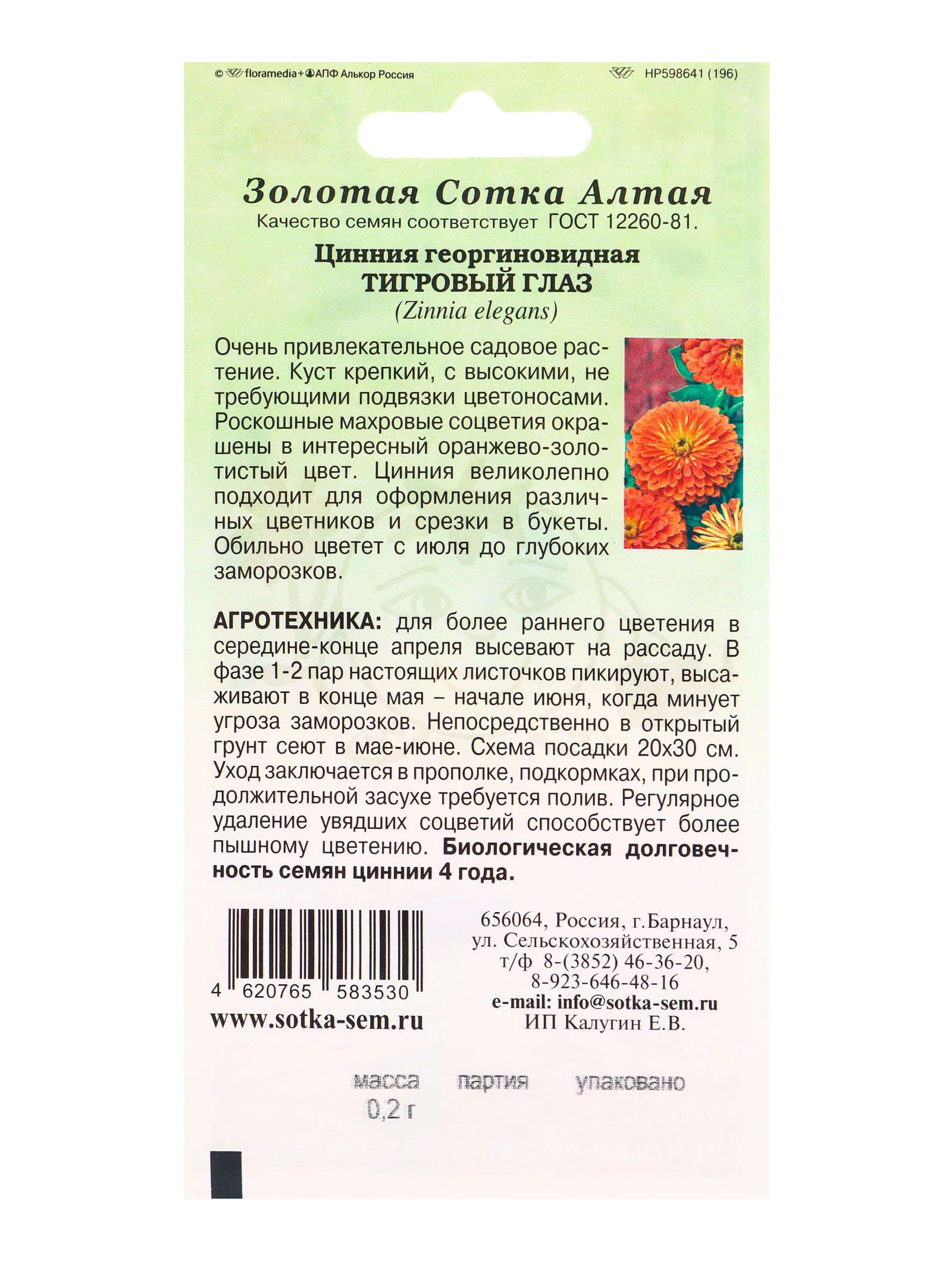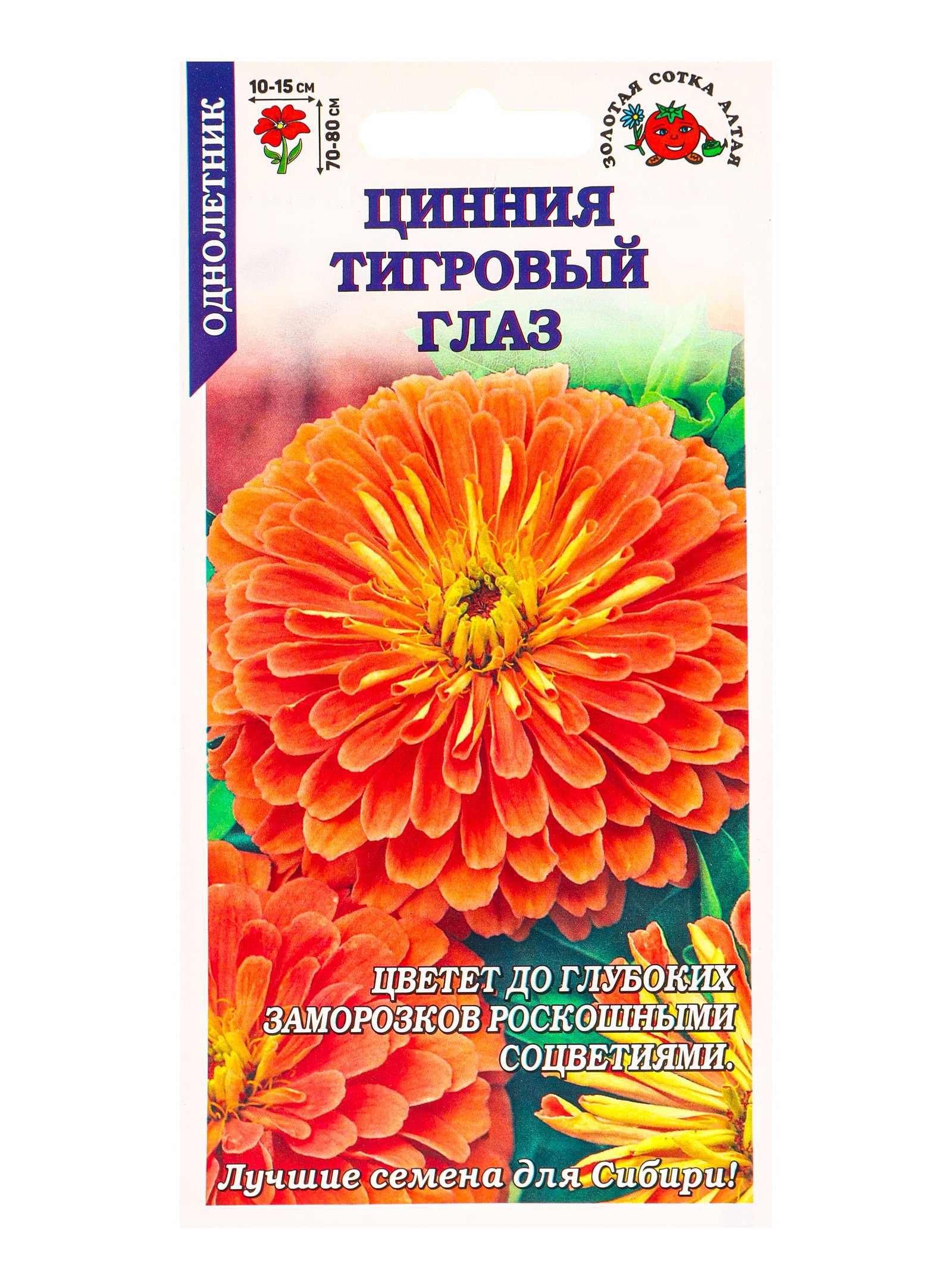 Семена Цинния "Тигровый глаз", 0.2 г, оранжевая, Золотая Сотка Алтая, Россия