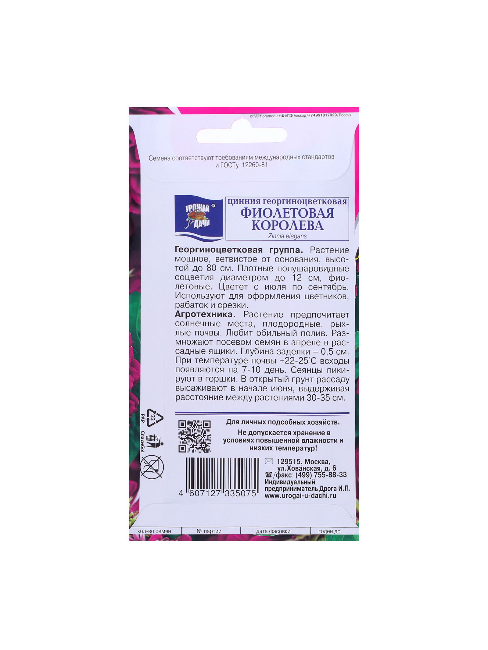 Набор семян Цинния георгин. "Фиолетовая королева", 5 шт., 9x17x1 см., Мой выбор, Россия