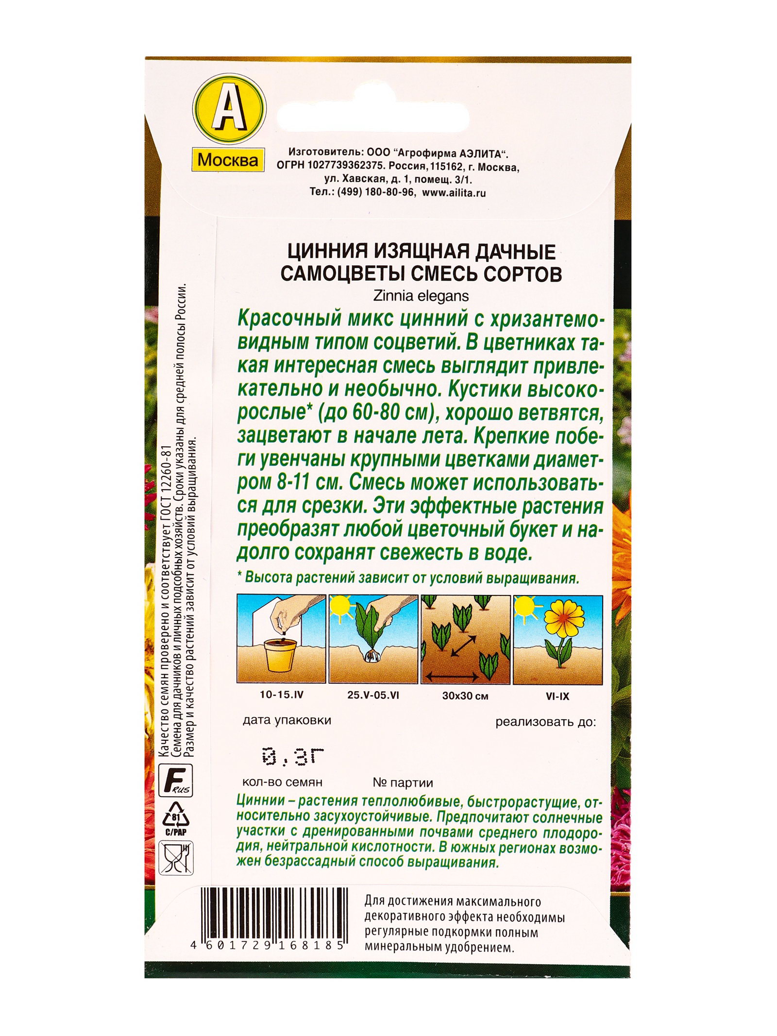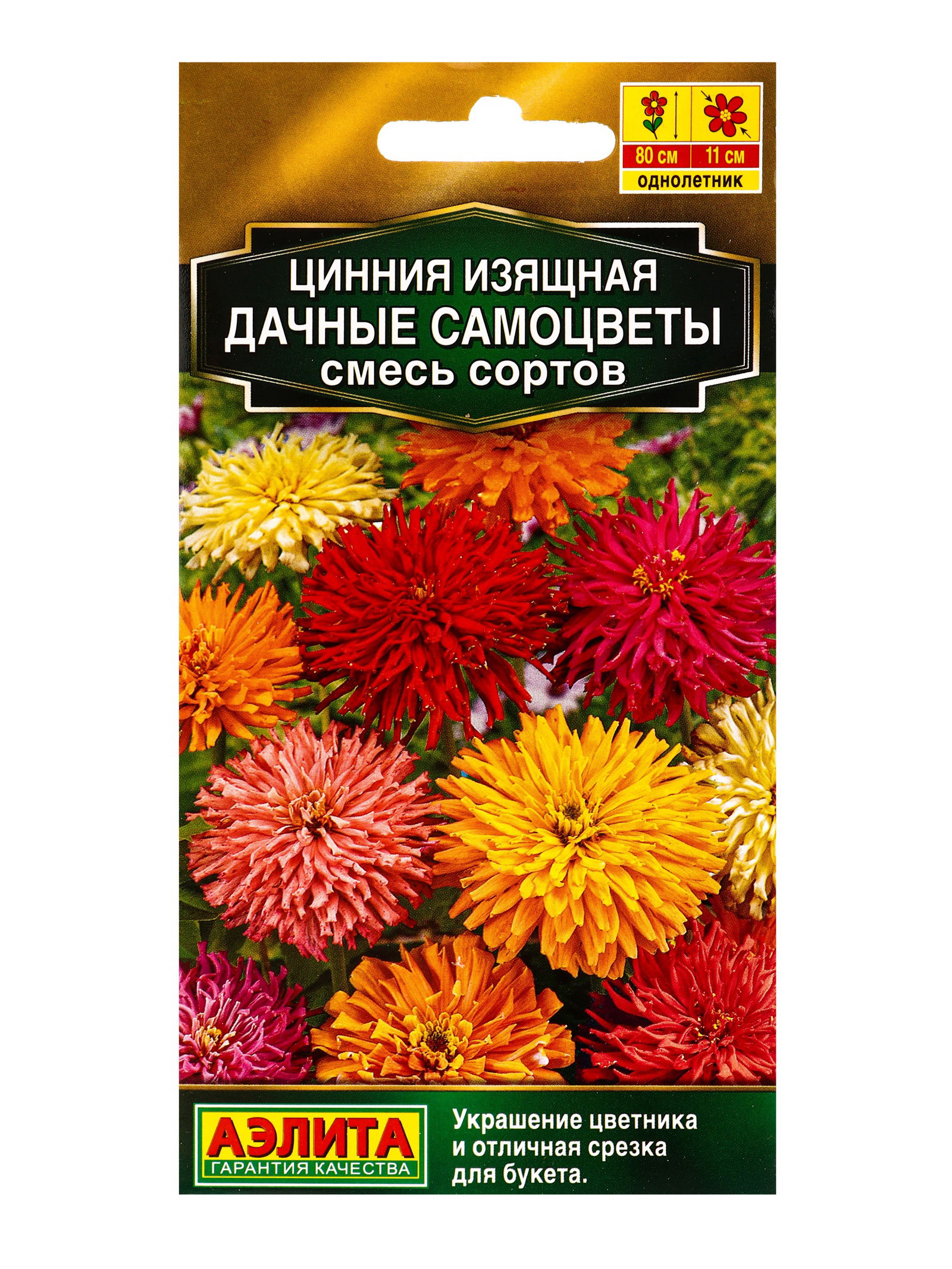 Семена цветов Цинния Дачные самоцветы, смесь сортов Золотая серия, Ц/П,0.3 г, Агрофирма АЭЛИТА, Нидерланды