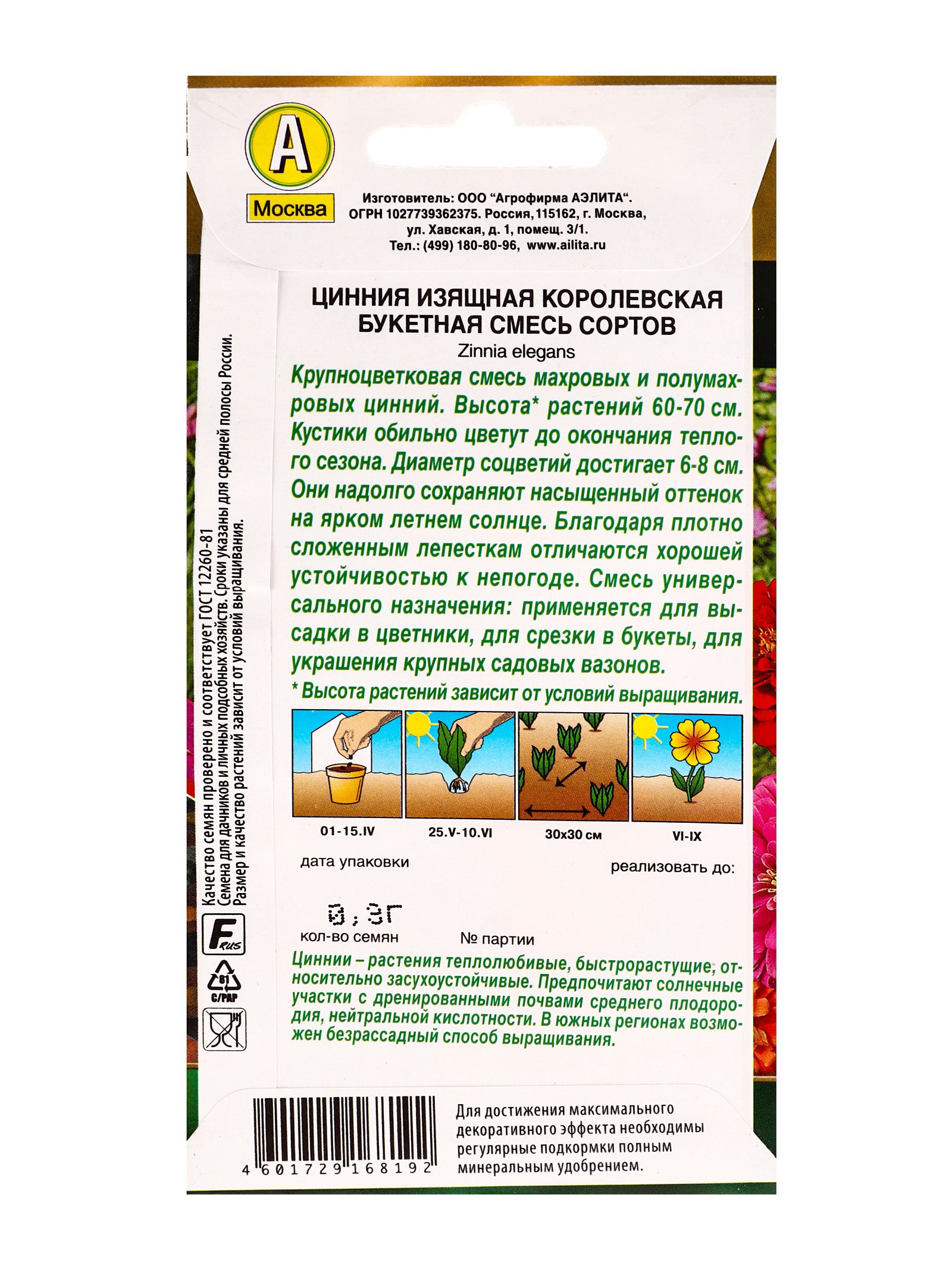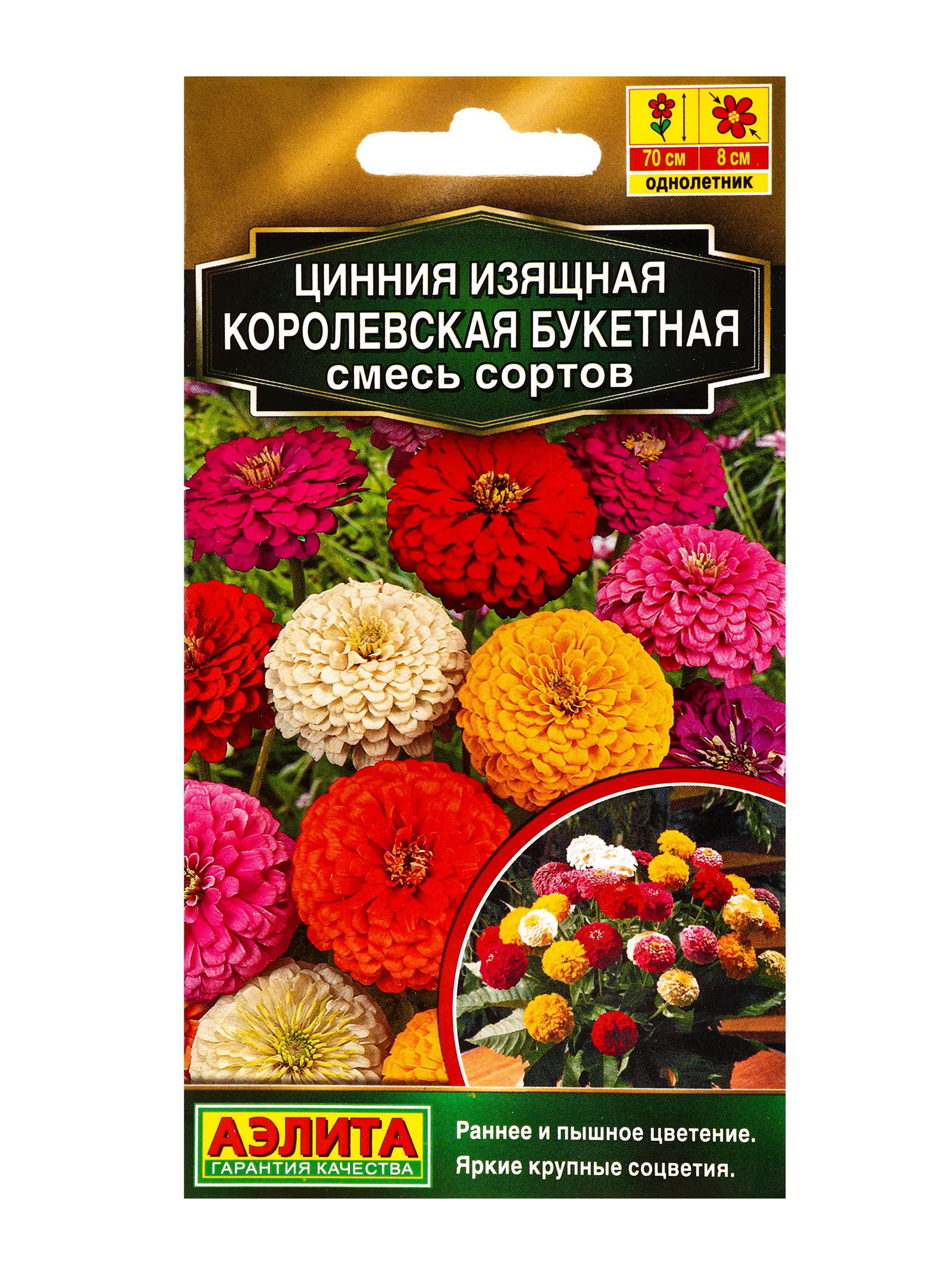 Семена цветов Цинния Королевская букетная, смесь сортов Золотая серия, Ц/П,0.3 г, Агрофирма АЭЛИТА, Нидерланды