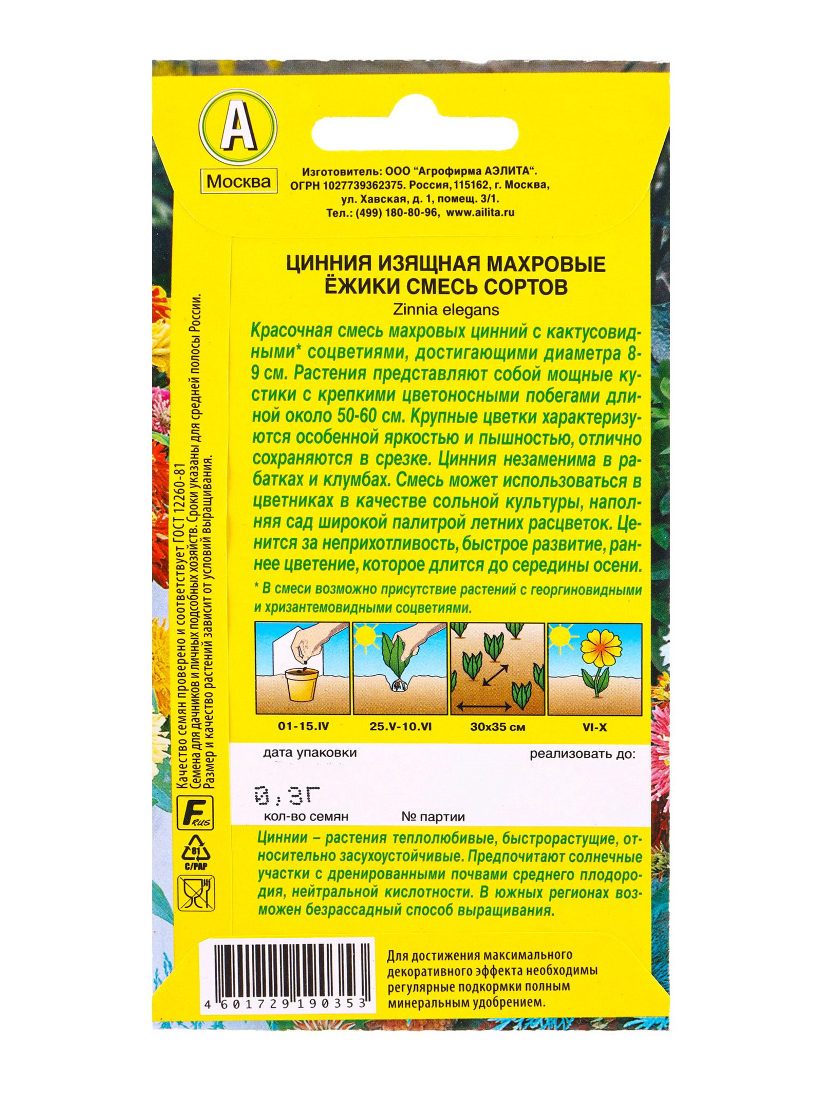Семена цветов Цинния Махровые ёжики, смесь сортов, Ц/П,0.3 г, Агрофирма АЭЛИТА, Нидерланды
