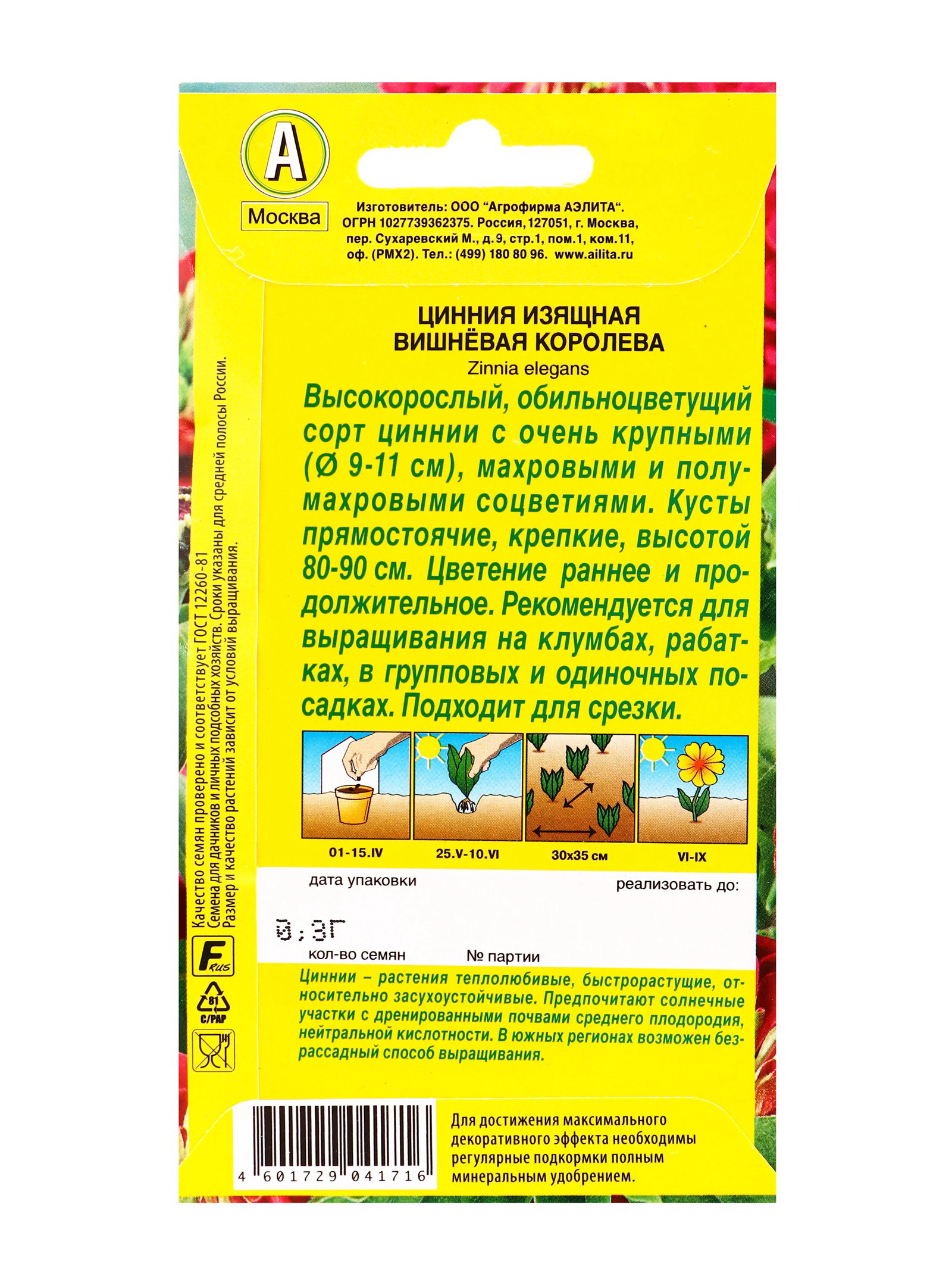 Семена цветов Цинния Вишневая королева, Ц/П,0.3 г, Агрофирма АЭЛИТА, Нидерланды