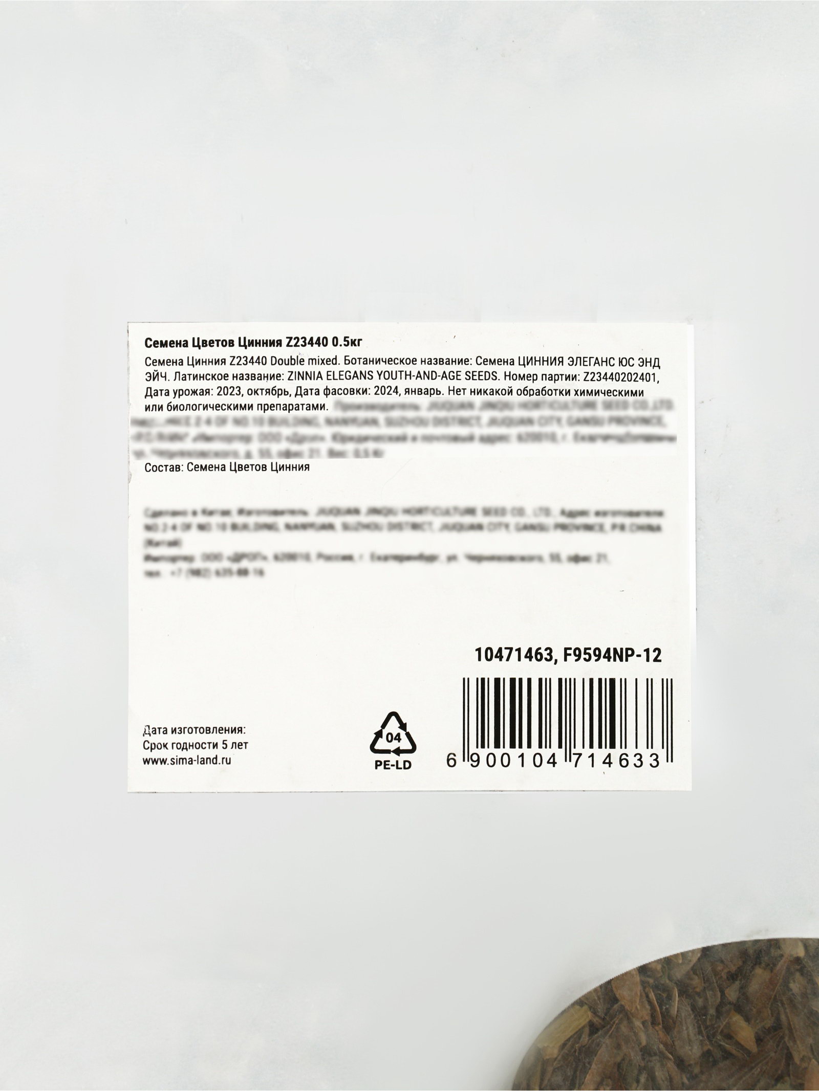 Семена цветов Цинния "Элеганс Юс Энд Эйч" махровая карликовая, Микс 0.5 кг, 25x35x10 см., Китай