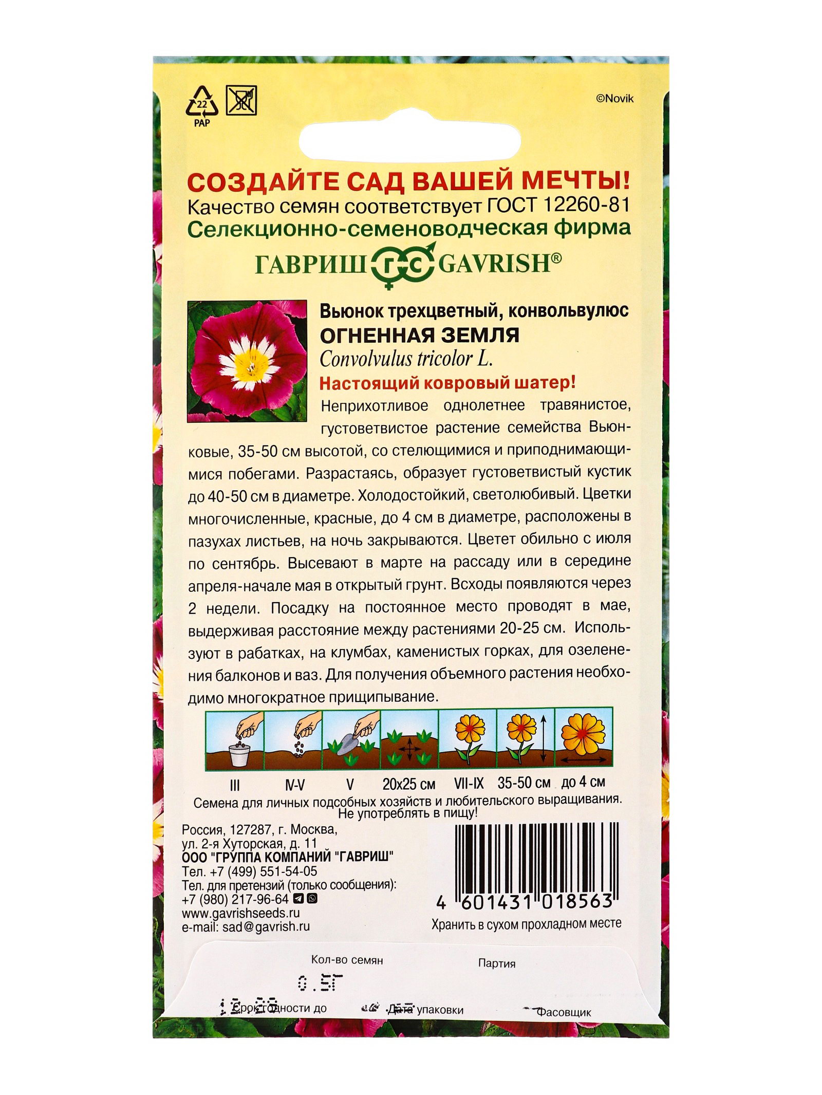 Семена цветов Вьюнок трехцветный Огненная земля 0.5 г, Гавриш, Россия