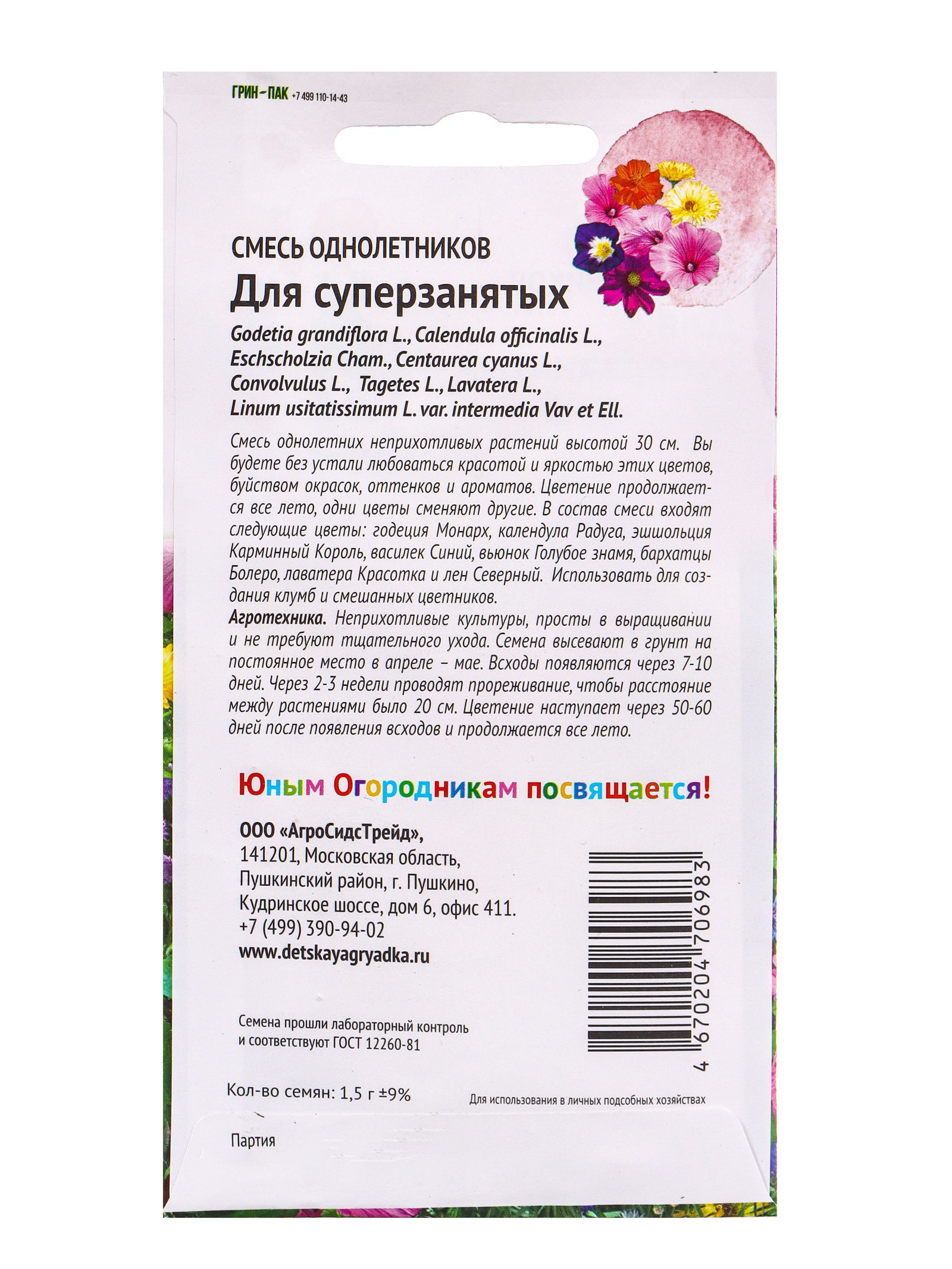 Семена Цветов Смесь "Однолетников Для суперзанятых", 1.5 г, Агросидстрейд, Нидерланды